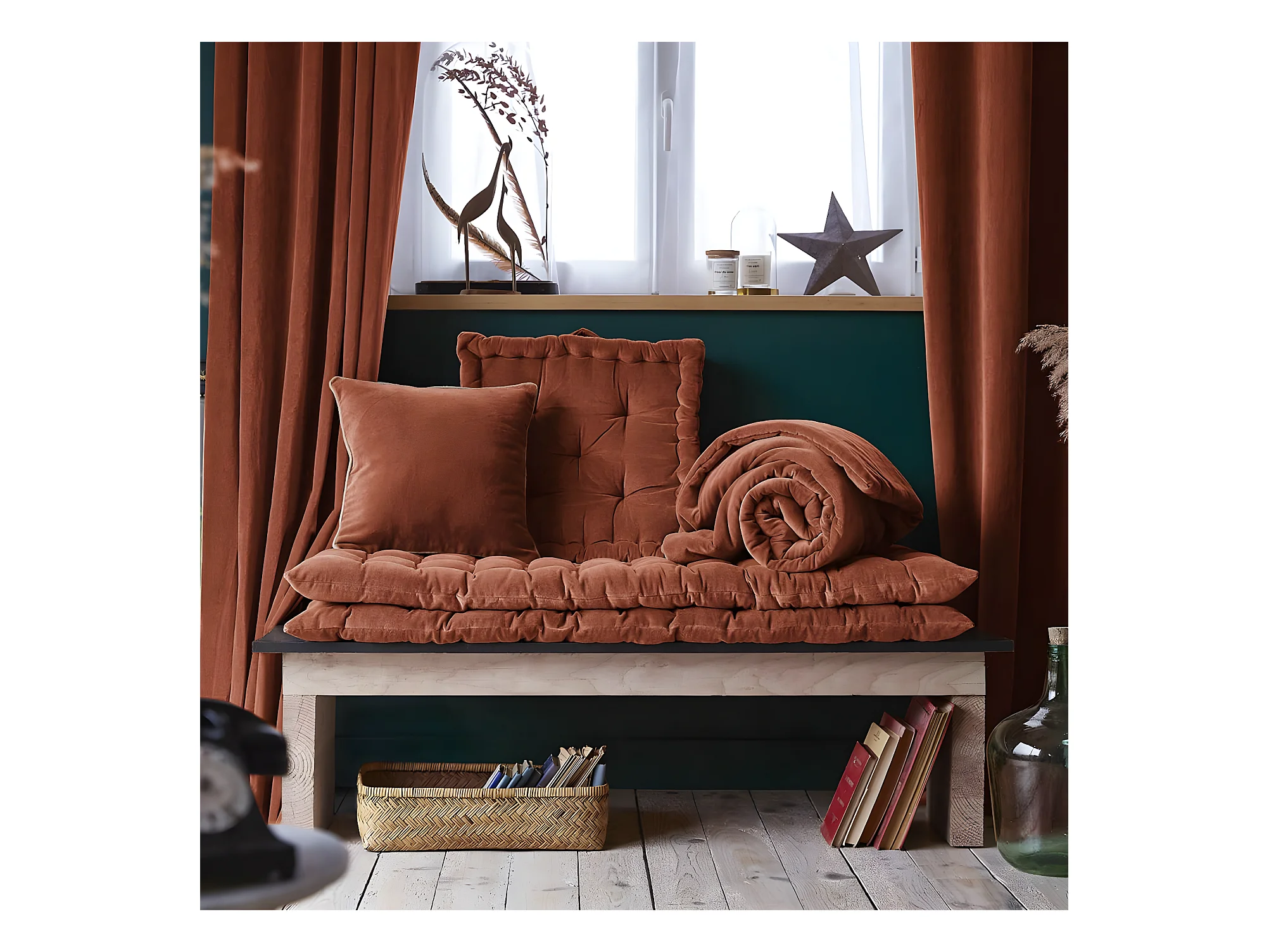 HARRIS - Coussin Déhoussable 45x45cm Velours de Coton Coloris Terracotta