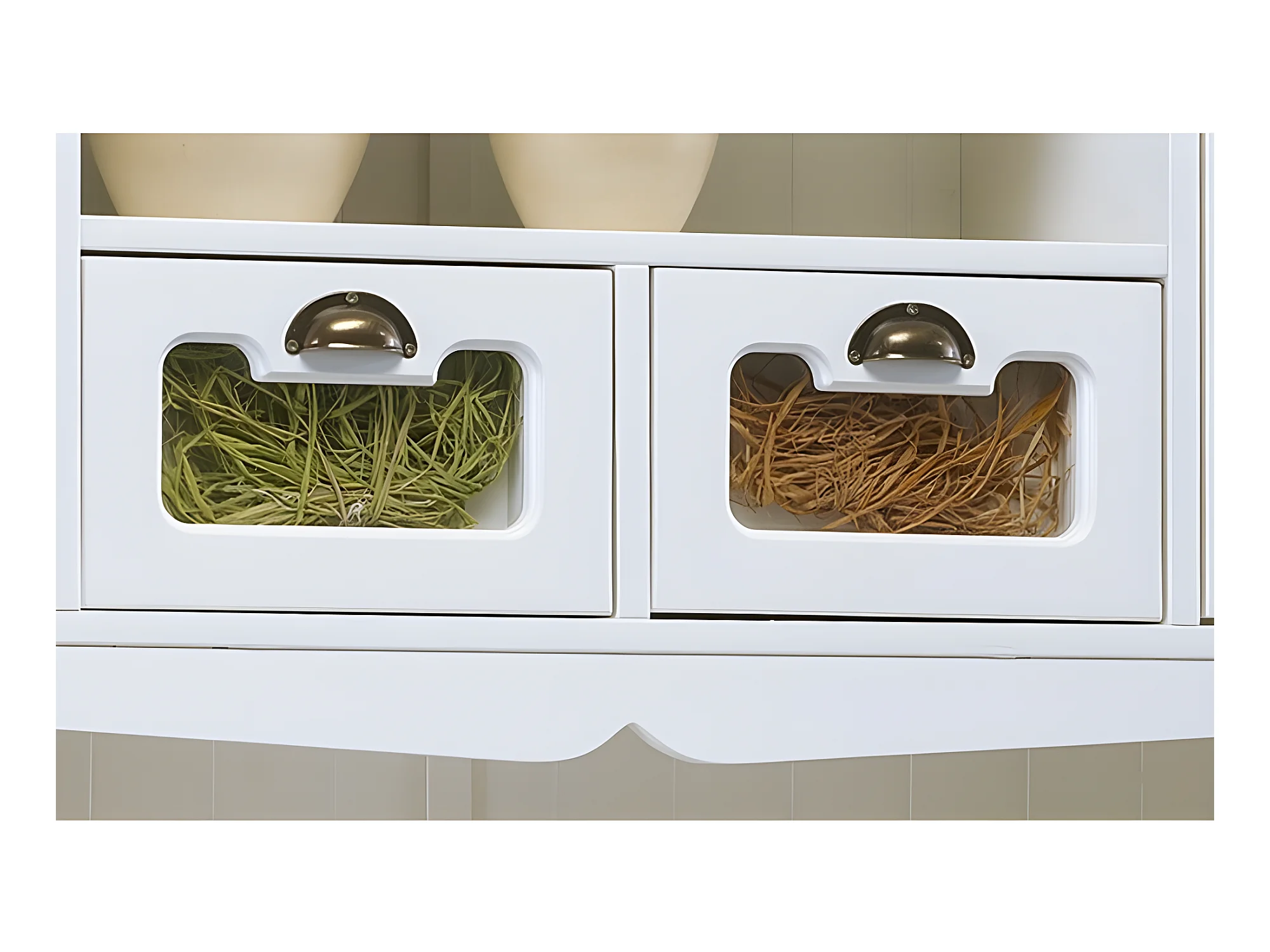 Haut de Vaisselier Blanc 9 Niches 2 Portes 2 Tiroirs Vitrés L 143 H 96 P 33 cm