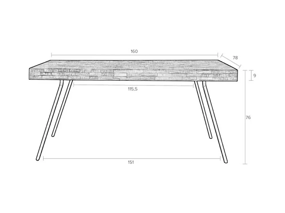 HAVANE - Table repas en bois de teck recyclé et acier noir