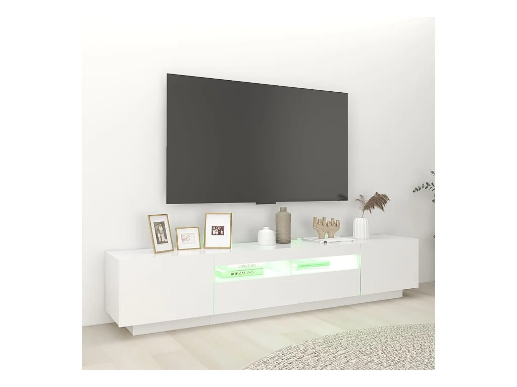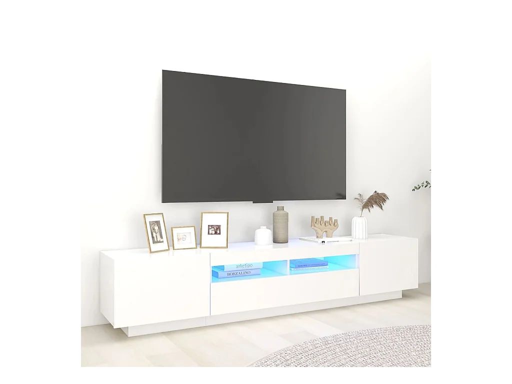 Havva Meuble TV avec lumières LED Blanc 200x35x40 cm
