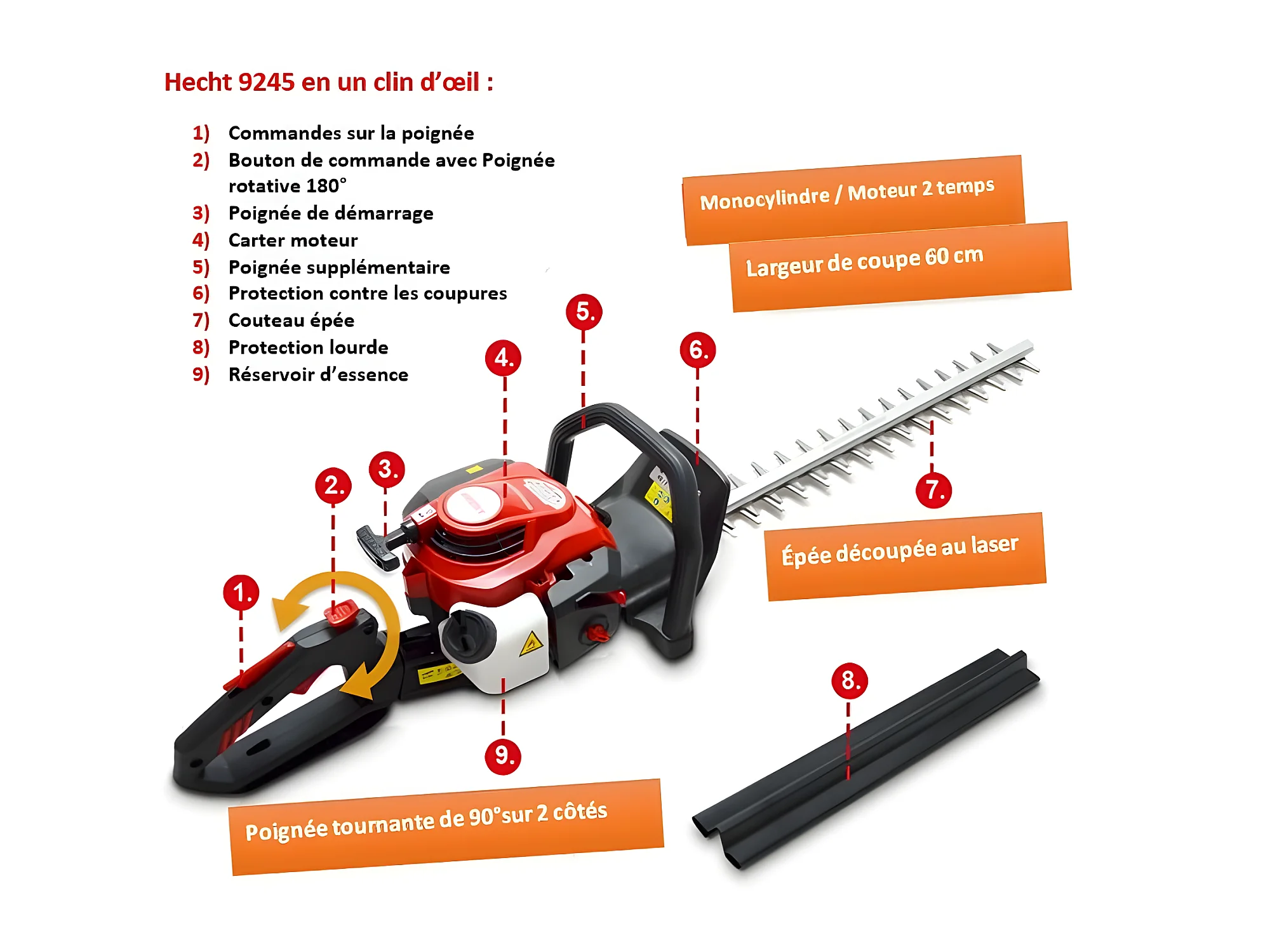 Hecht 9245 Taille haies à essence professionnel Moteur 2 temps système anti-vibration