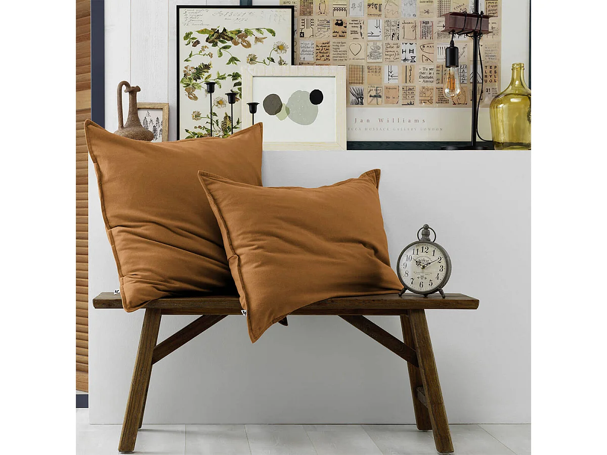 HEDDA - Taie d'Oreiller 50x70cm Flanelle de Coton Coloris Camel
