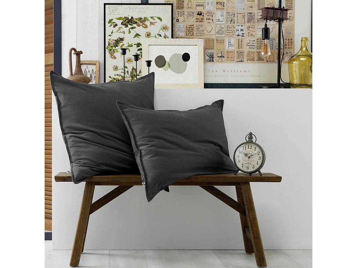 2 Taies d'oreillers gris foncé 100% coton 63 x 63 cm