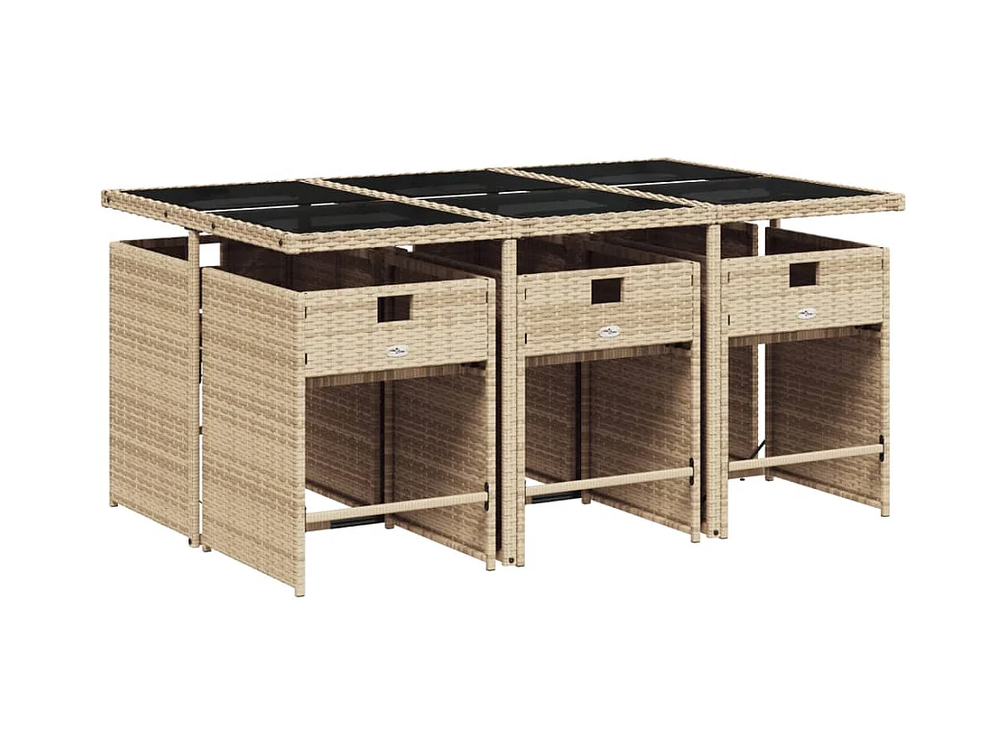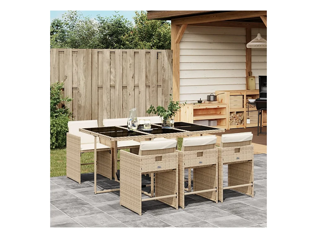 Heeswijk-Dinther Ensemble à manger de jardin et coussins 7 pcs beige poly rotin
