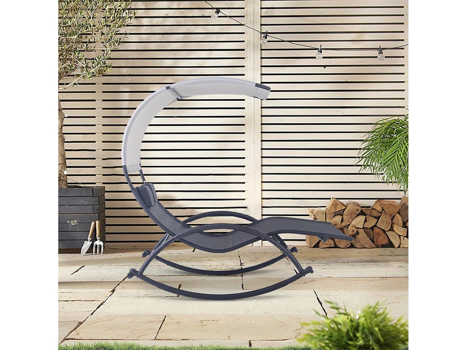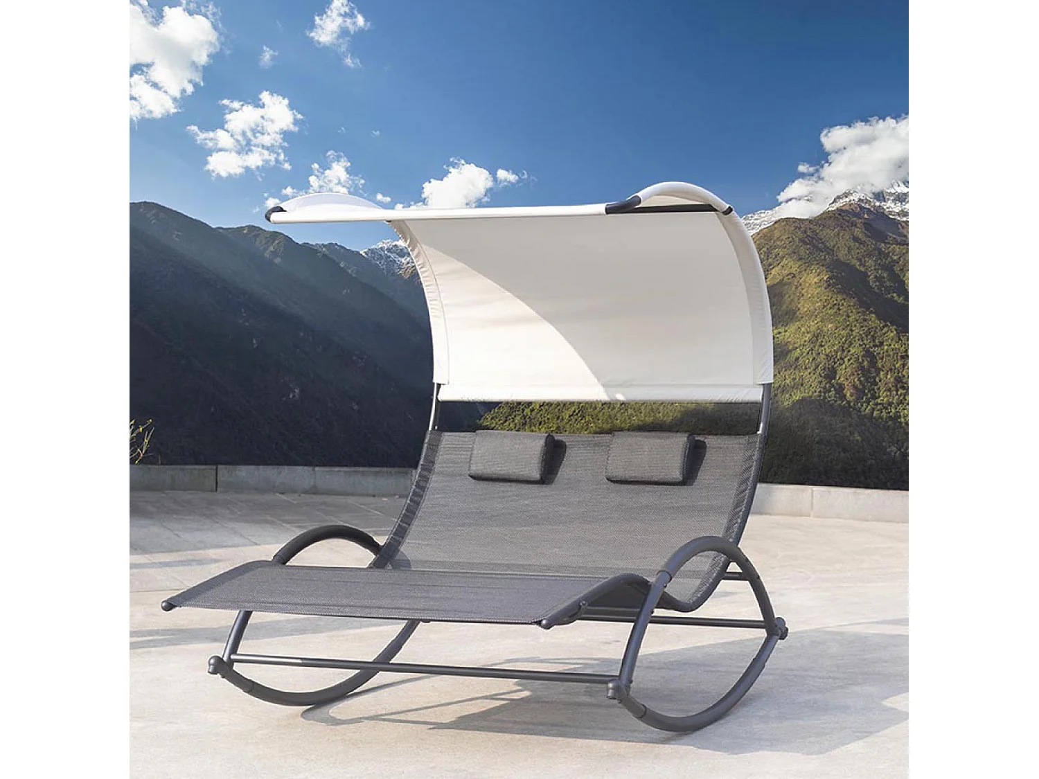 Transat double à bascule avec auvent noir et gris HEIRA