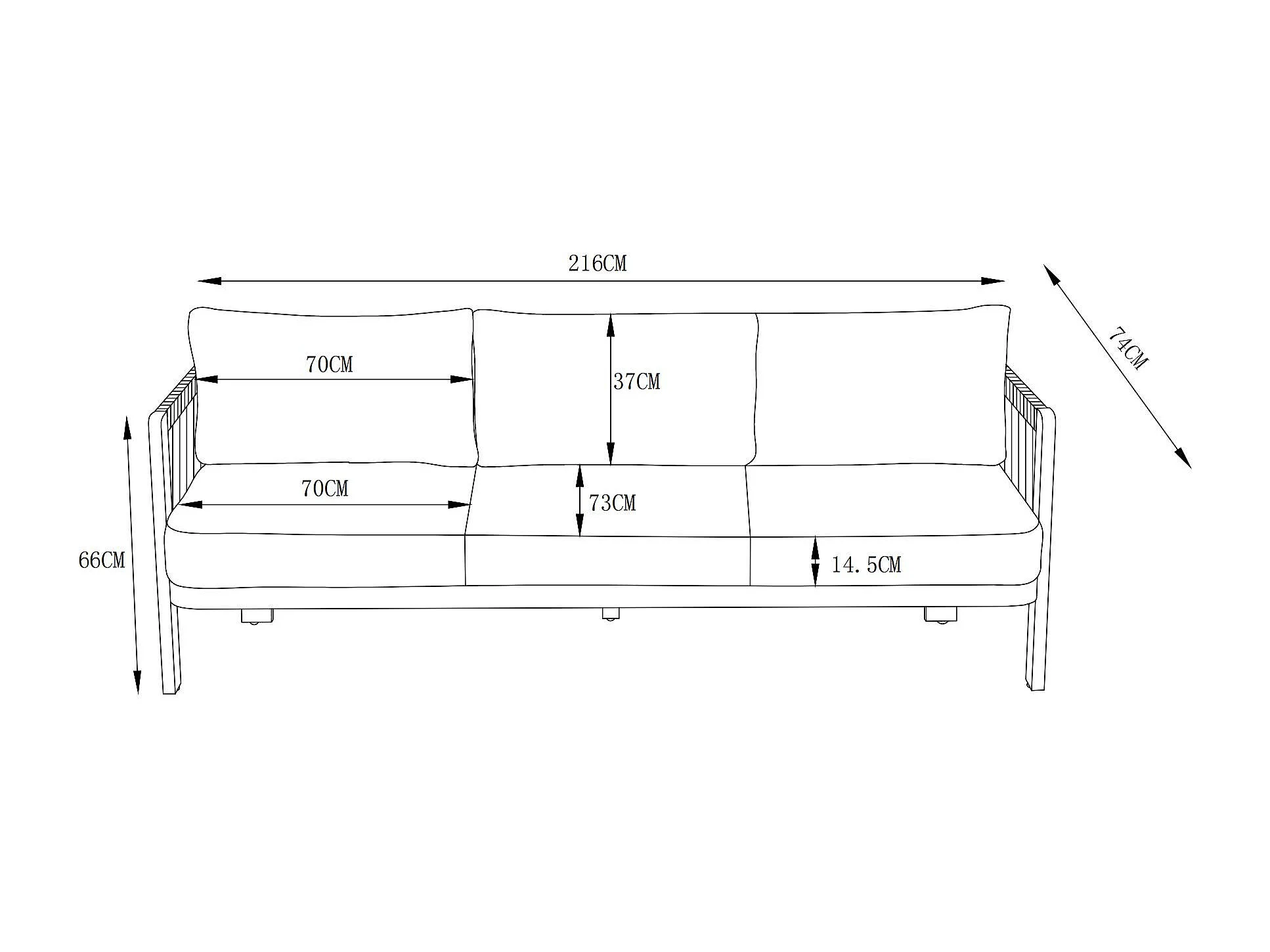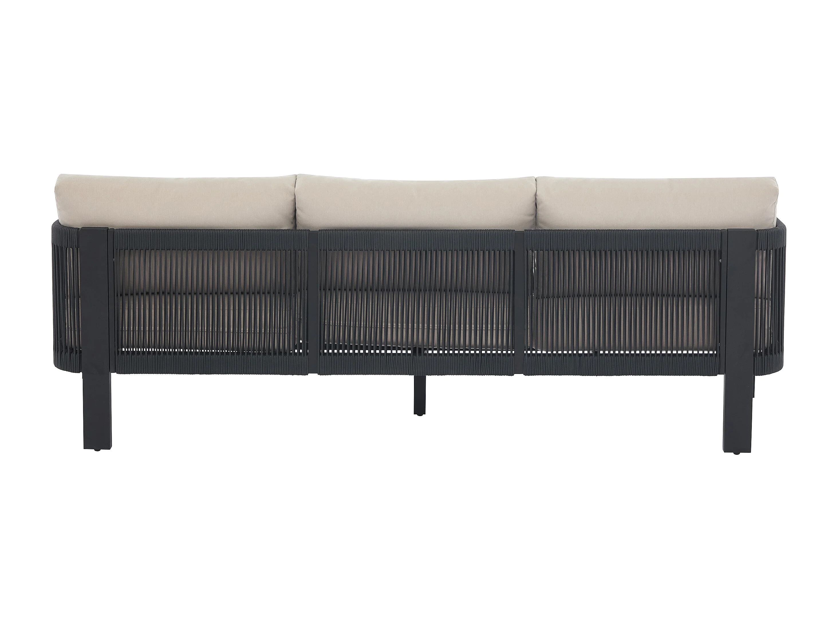 Canapé de jardin 3 places en aluminium et corde - Noir avec coussins beiges - HELYSI de MYLIA
