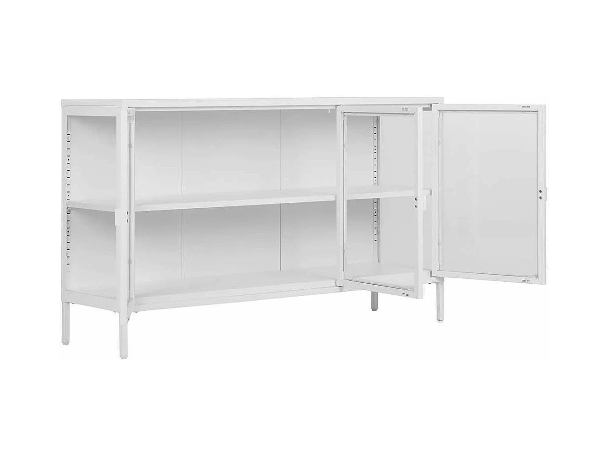 HENDRA - Buffet 3 Portes Verre et Acier Blanc