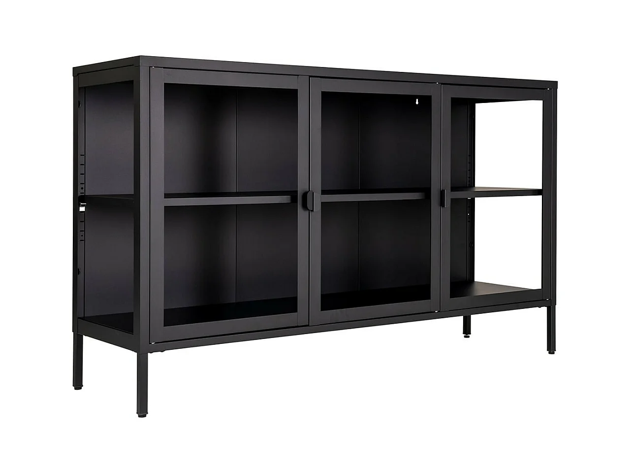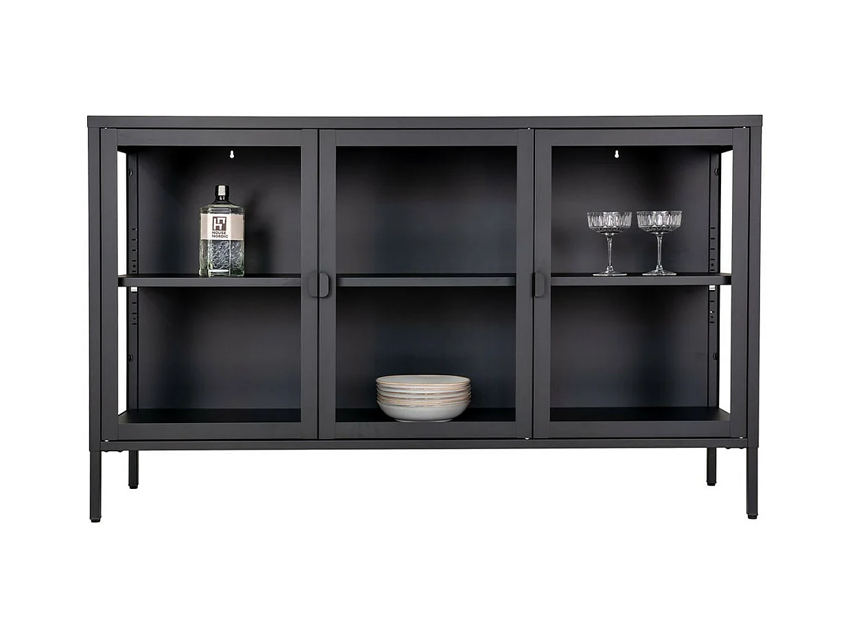 HENDRA - Buffet 3 Portes Verre et Acier Noir