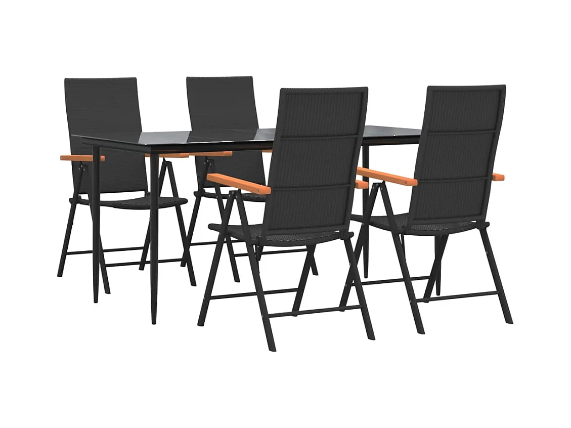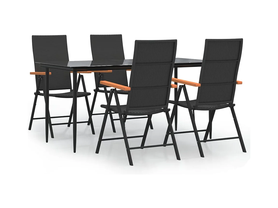 Henna Ensemble à manger de jardin 5 pcs Noir et marron Résine tressée