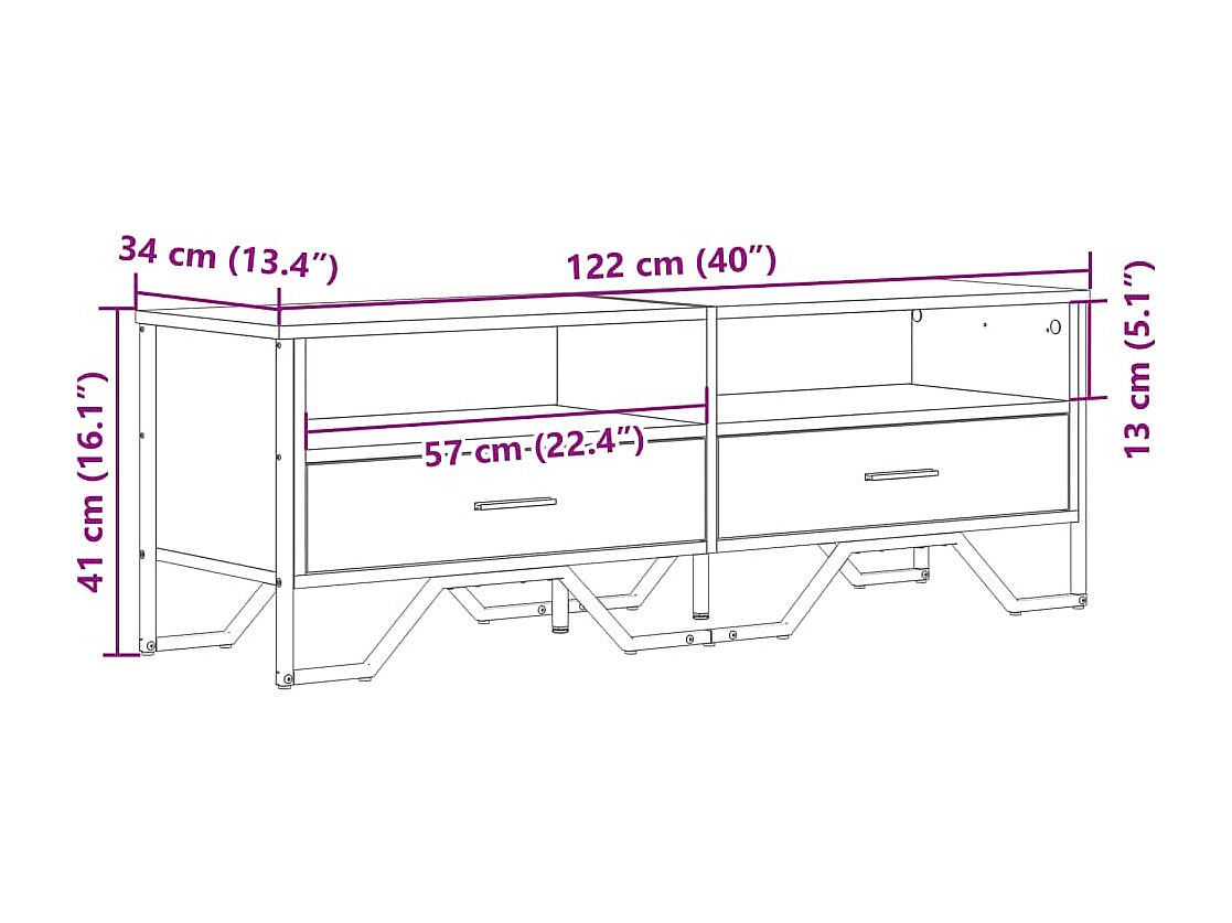 Henri-Jean Meuble TV sonoma gris 122x34x41 cm bois d'ingénierie