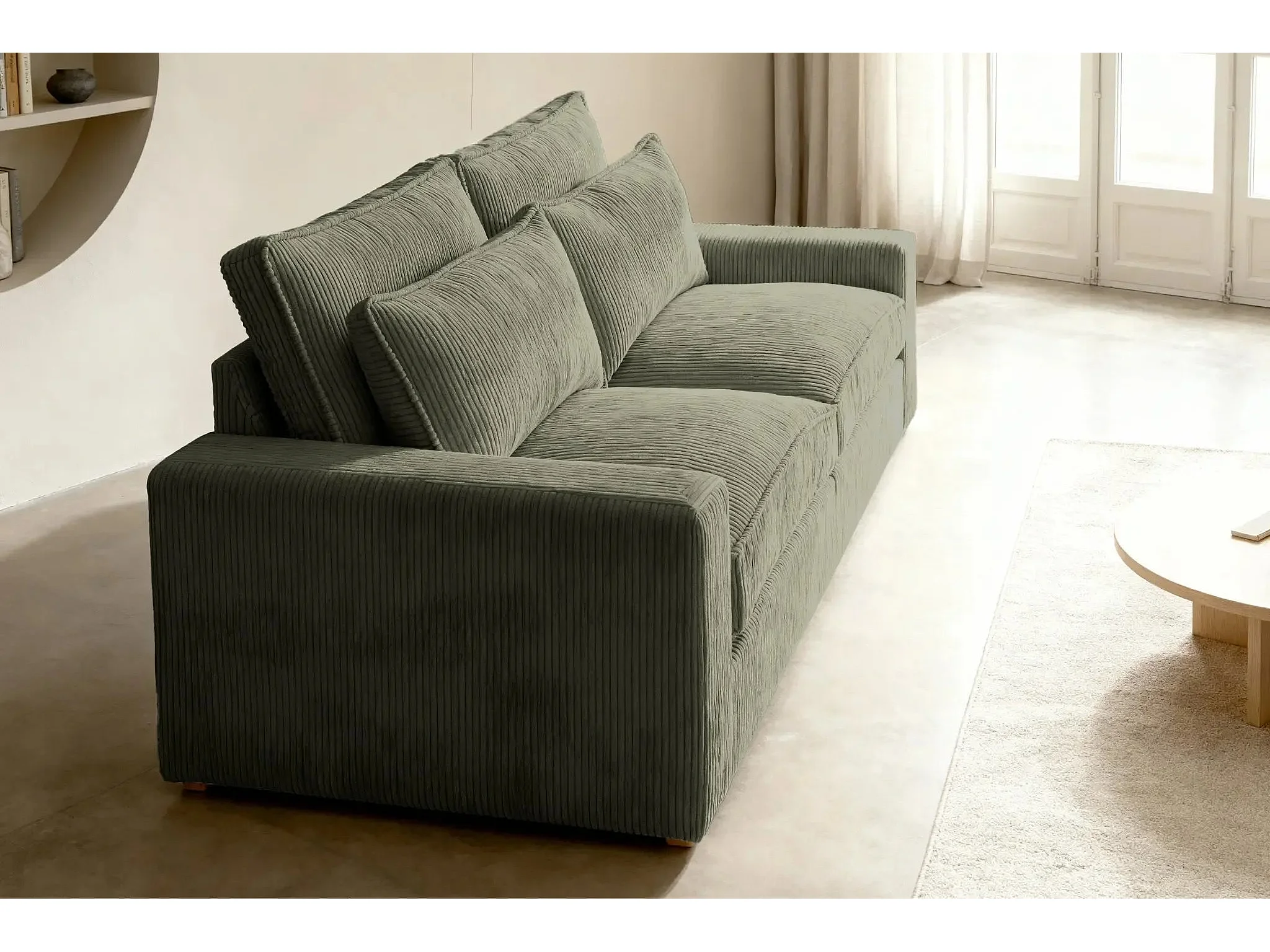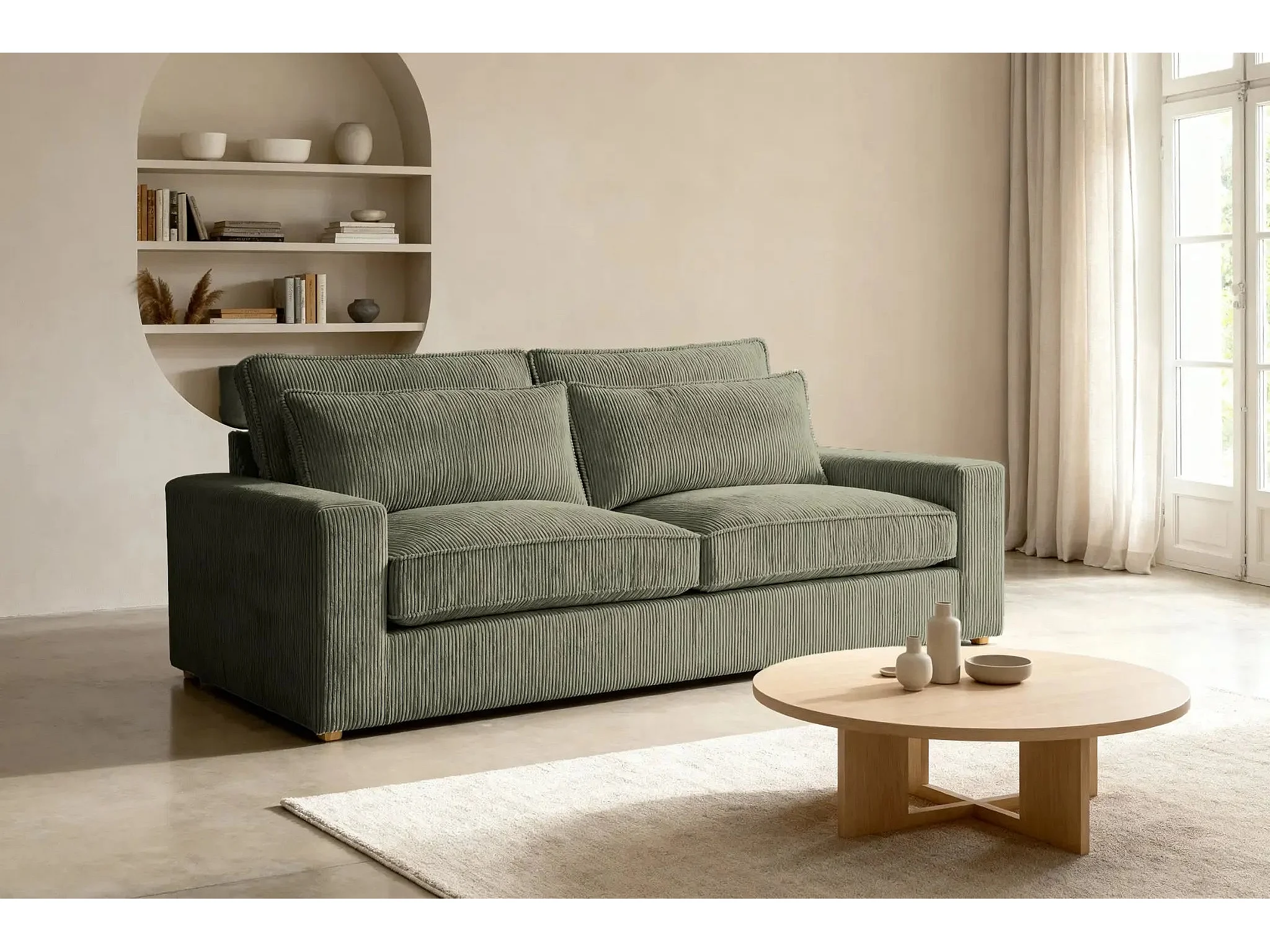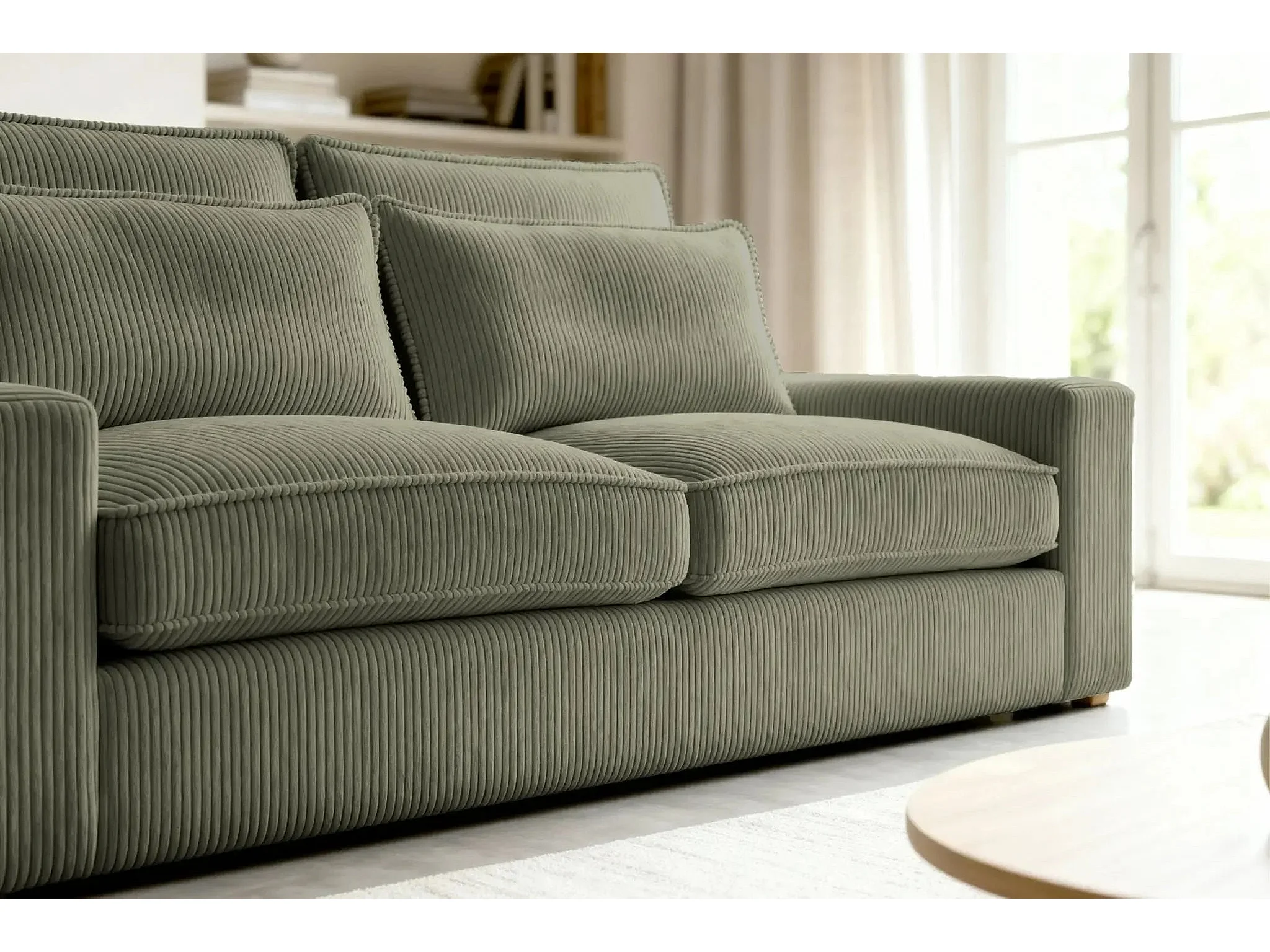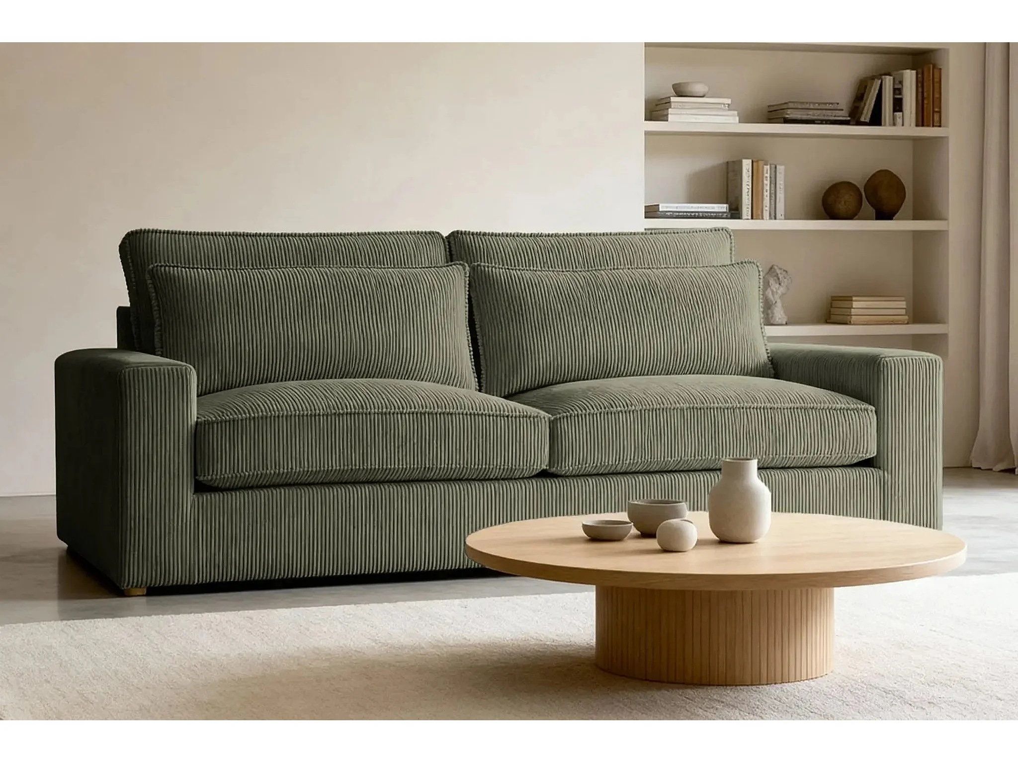 HENRY - Canapé droit velours côtelé 2 places - Vert