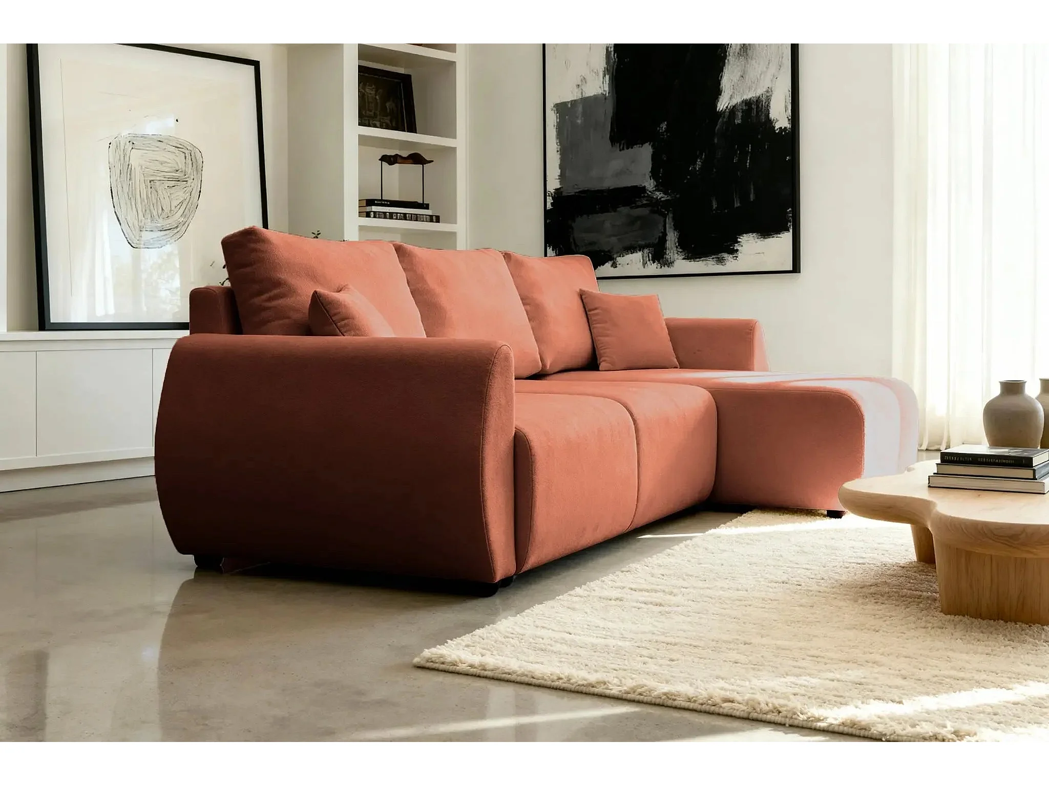 HERA - Canapé d'angle convertible tissu doux 3 places - Terracotta