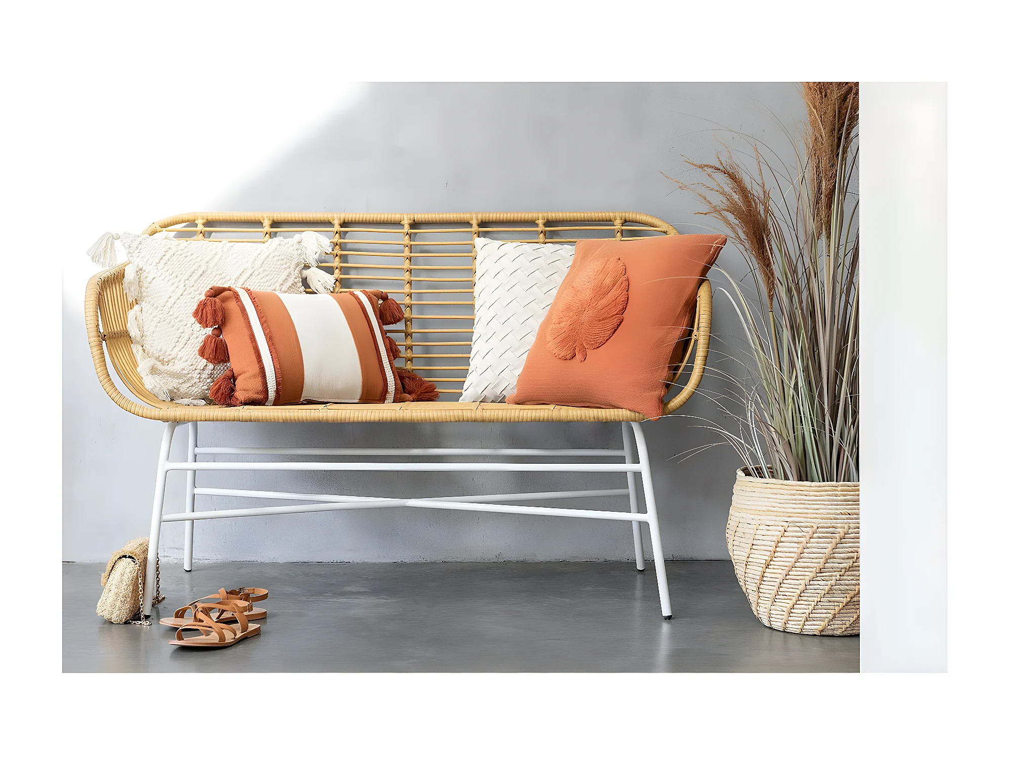 Herbe de Pampas Artificielle en Pot "5 Têtes" 147cm Vert & Orange