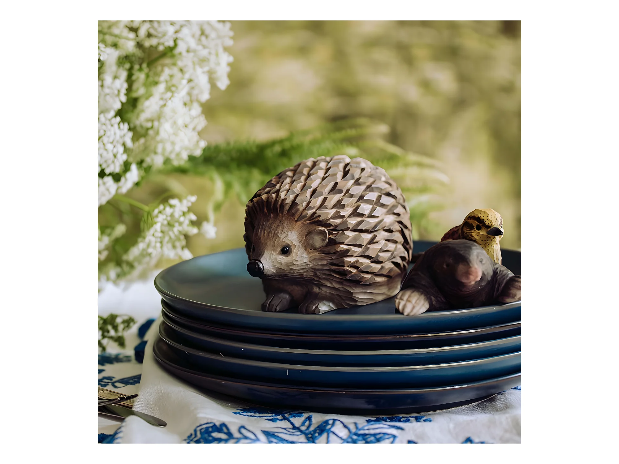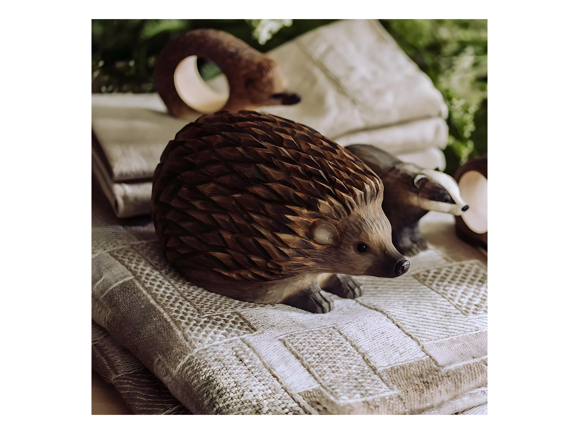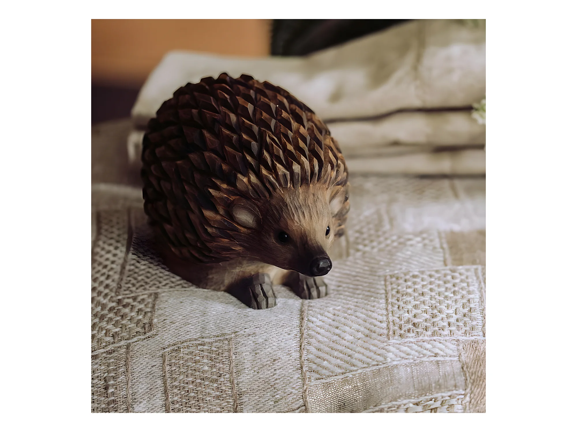 Hérisson décoratif en bois sculpté à la main