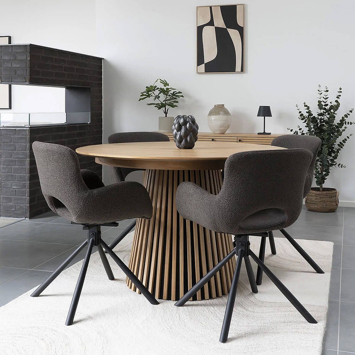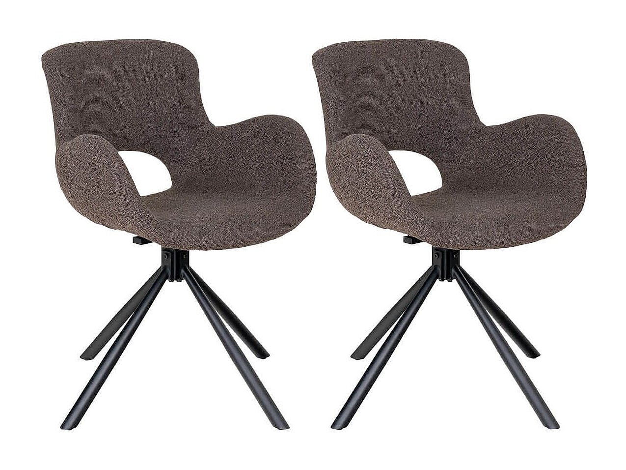 HERMOS - Lot de 2 Fauteuils de Table Tissu Bouclé Taupe Pied Pivotant Métal Noir
