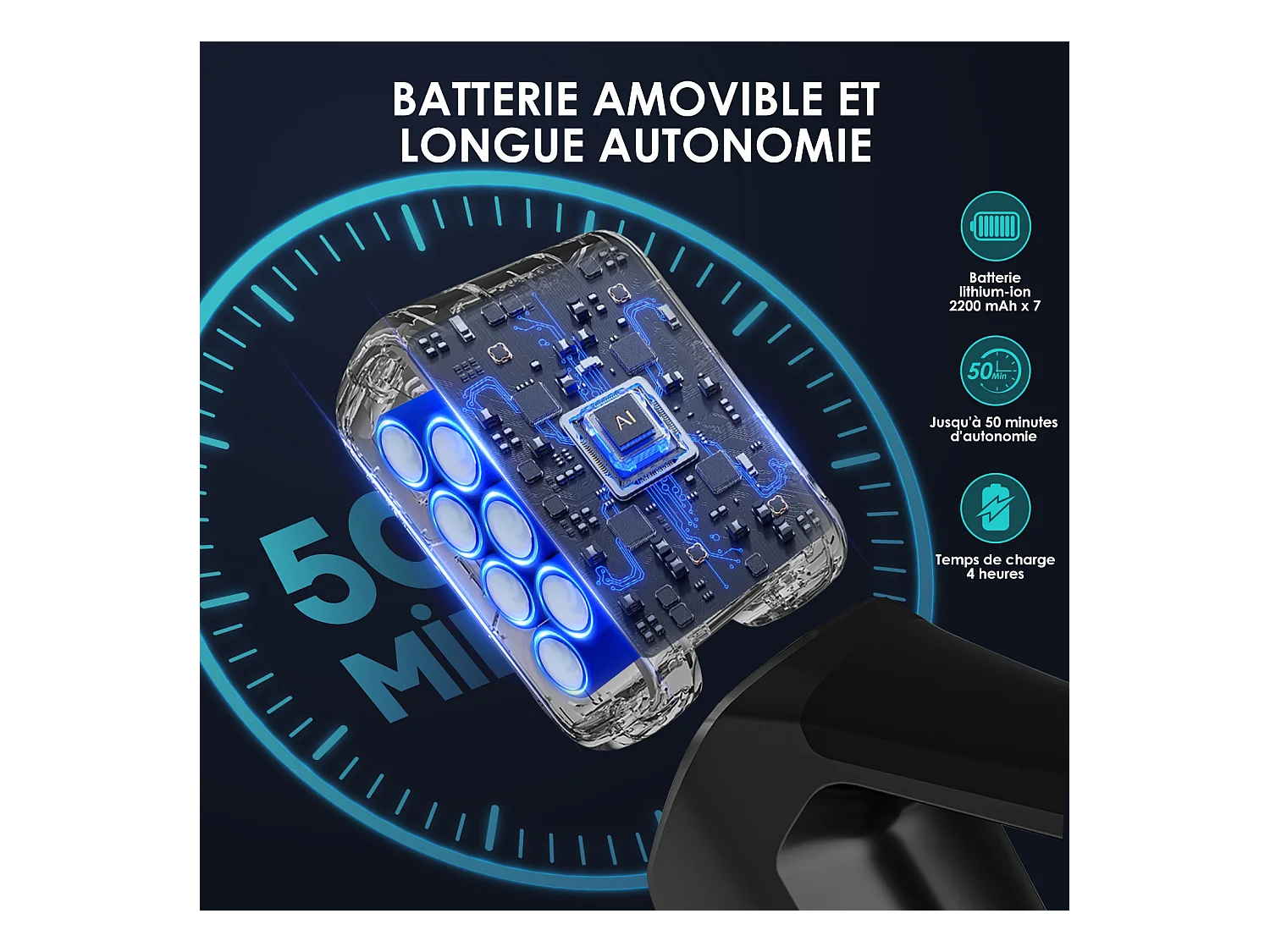 Hiazurm Aspirateur Balai - 480W Aspirateur Sans Fil - 40000Pa - Batterie 2200 mAh - 50 Minutes d'Autonomie - Bac à Poussière 1,5L