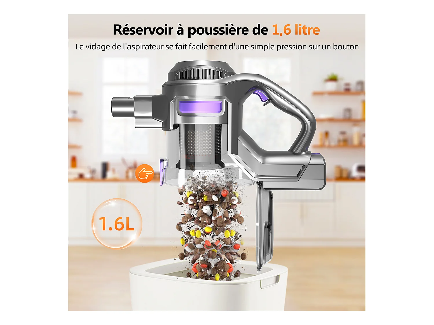Hiazurm Aspirateur sans fil - 360W - Batterie 2200 mAh - 50 minutes - Bac à poussière de 1,3 L - Pour tapis et sols durs