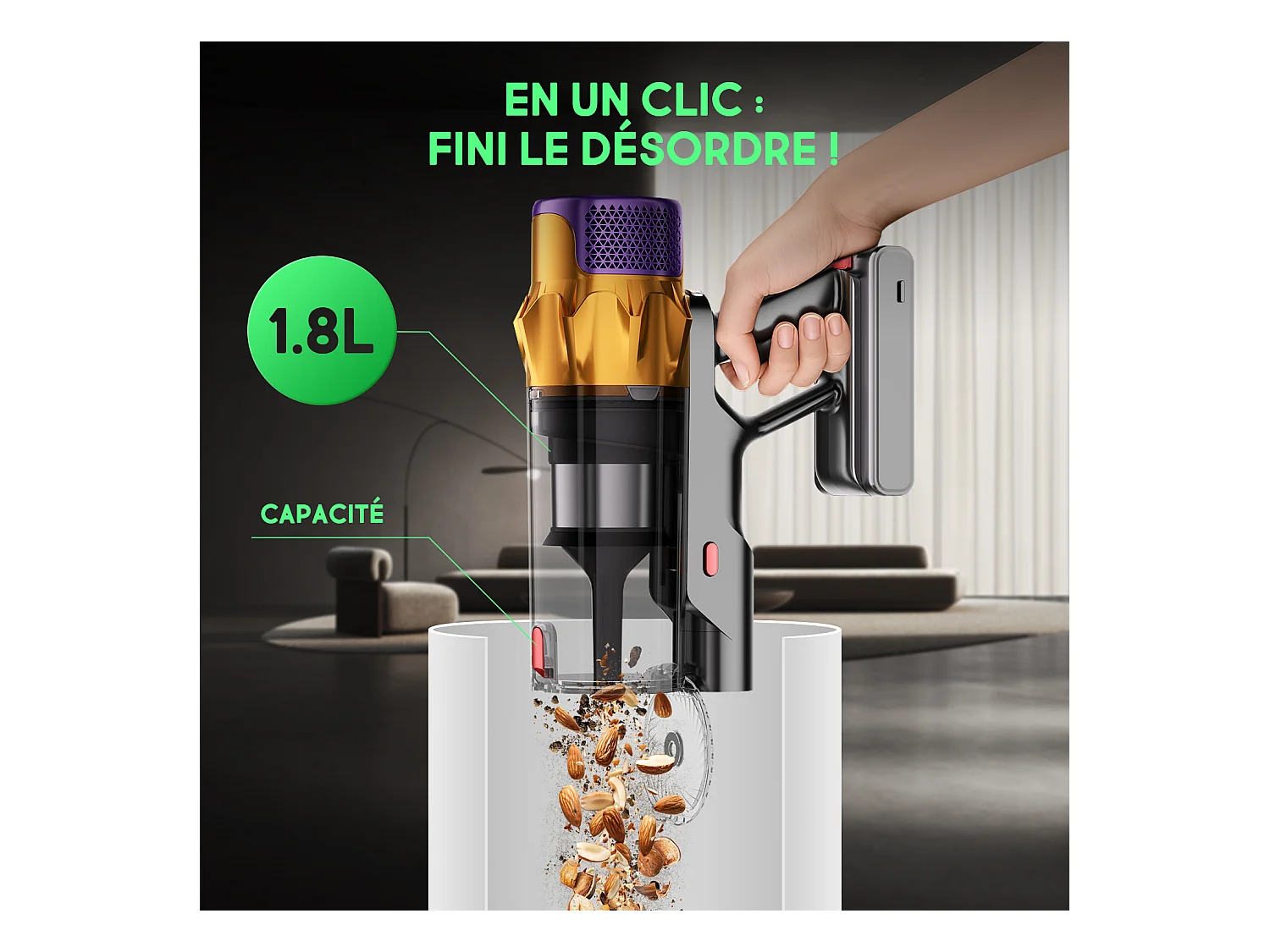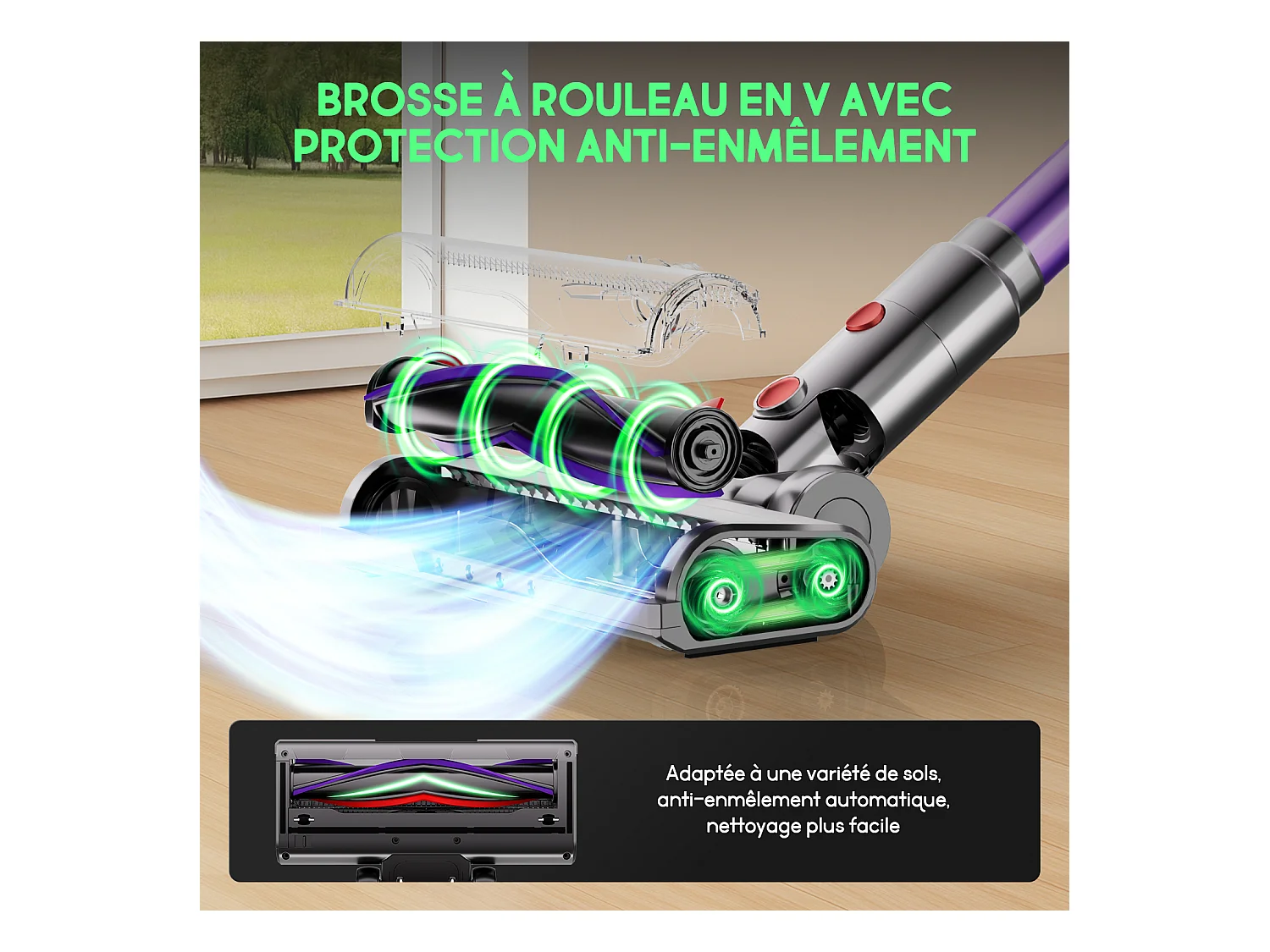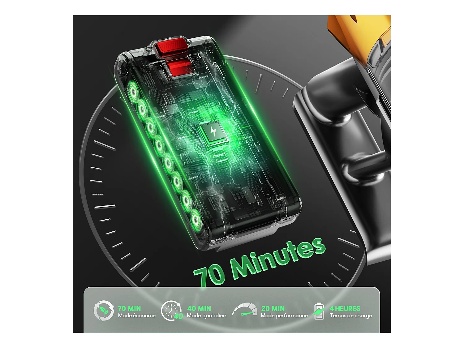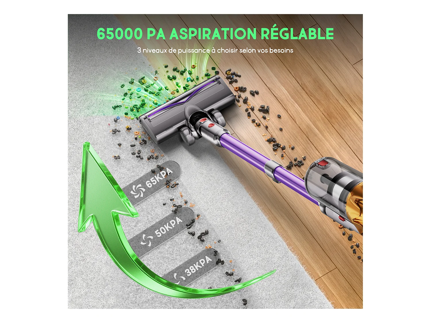 Hiazurm Aspirateur sans fil - 65000Pa - Aspirateur 3 niveaux de puissance d'aspiration - Écran LED - Autonomie de 20-70 minutes