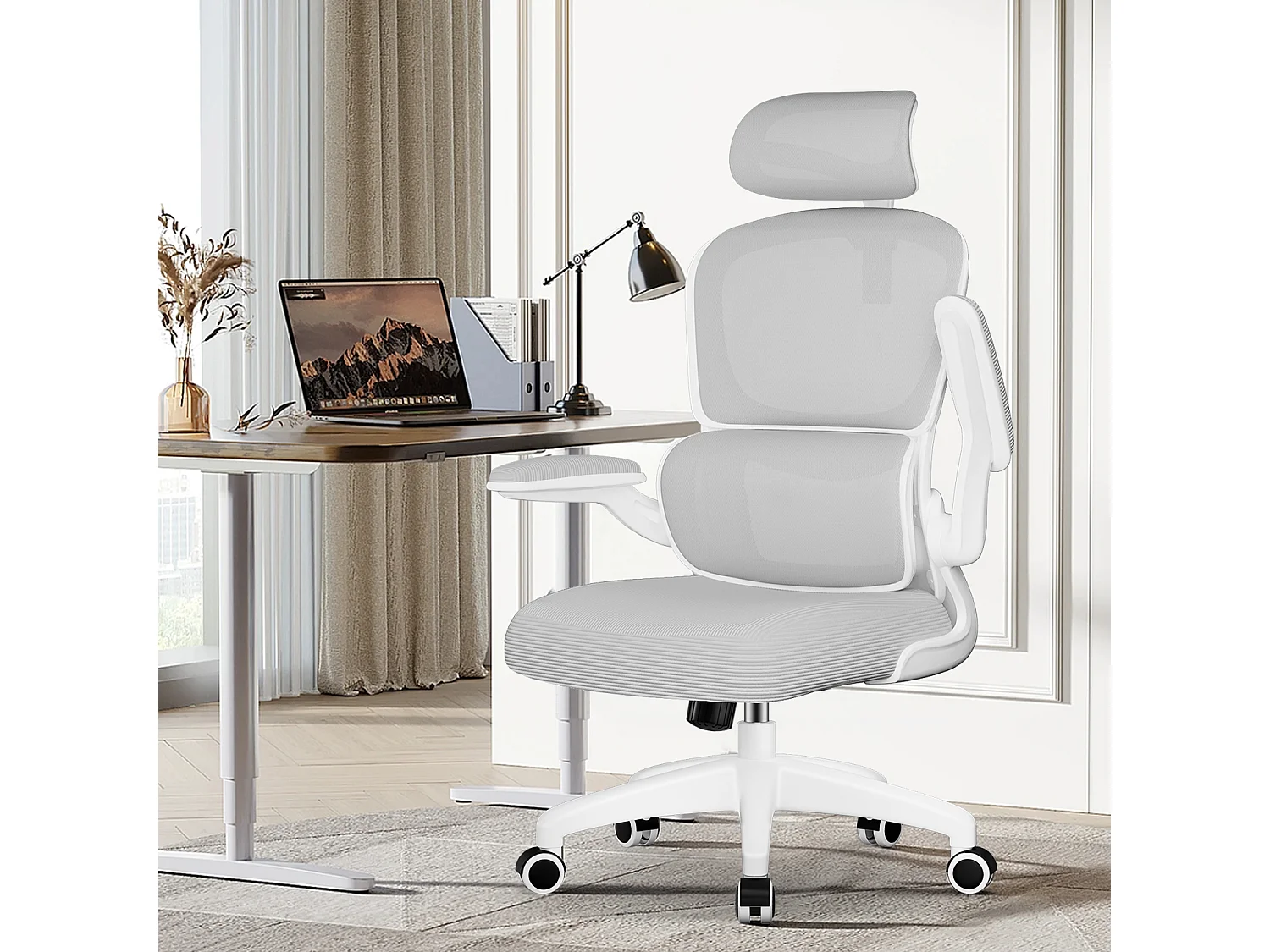 Hiazurm Chaise de Bureau Ergonomique - Chaise de Bureau avec Accoudoirs Pliables - Chaises de Bureau pour Adultes - 150 Kg - Gris