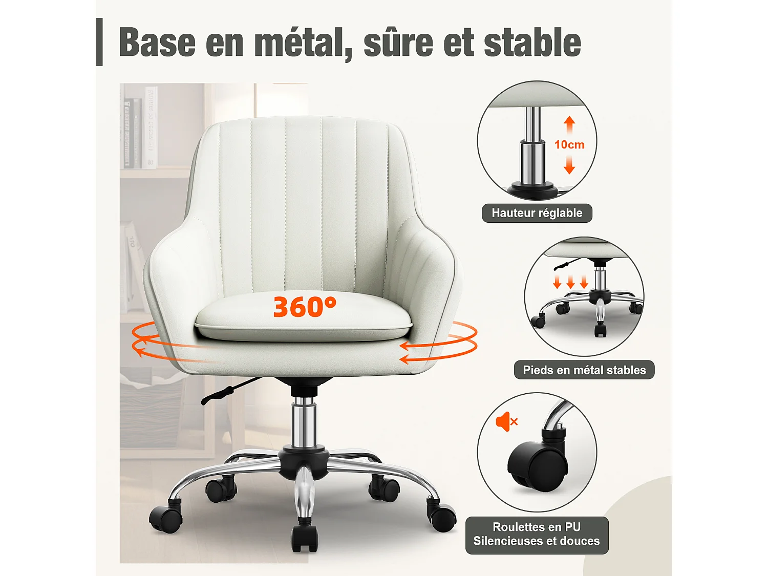 Hiazurm Chaise de Bureau Ergonomique - Chaise de Bureau avec Revêtement Doux en Bouclé, Accoudoirs Intégrés, Coussin Épais en Teddy