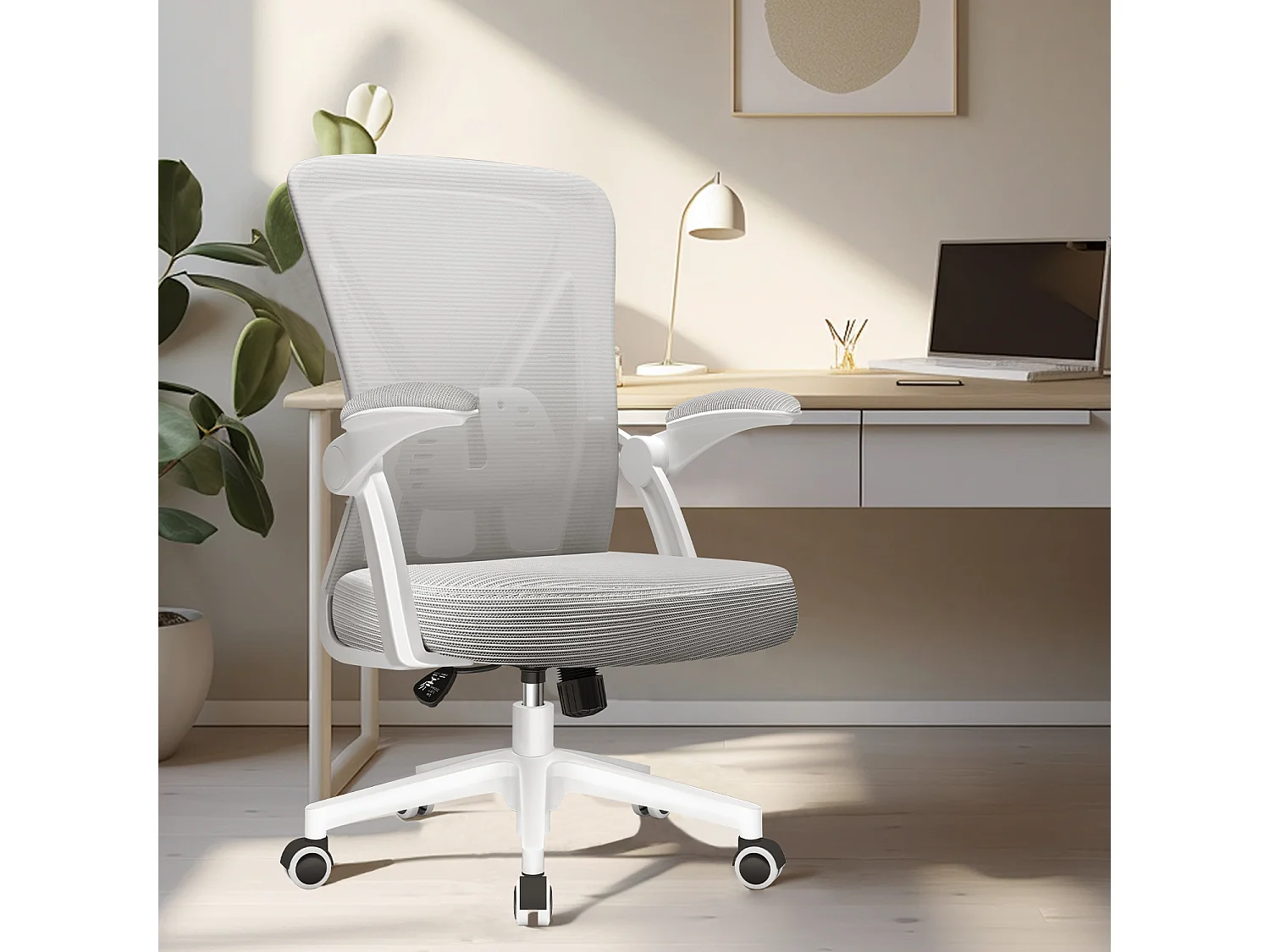 Hiazurm Chaise de Bureau Ergonomique - Chaise de Bureau avec Accoudoirs Pliables - Chaises de Bureau pour Adultes - 150 Kg - Gris