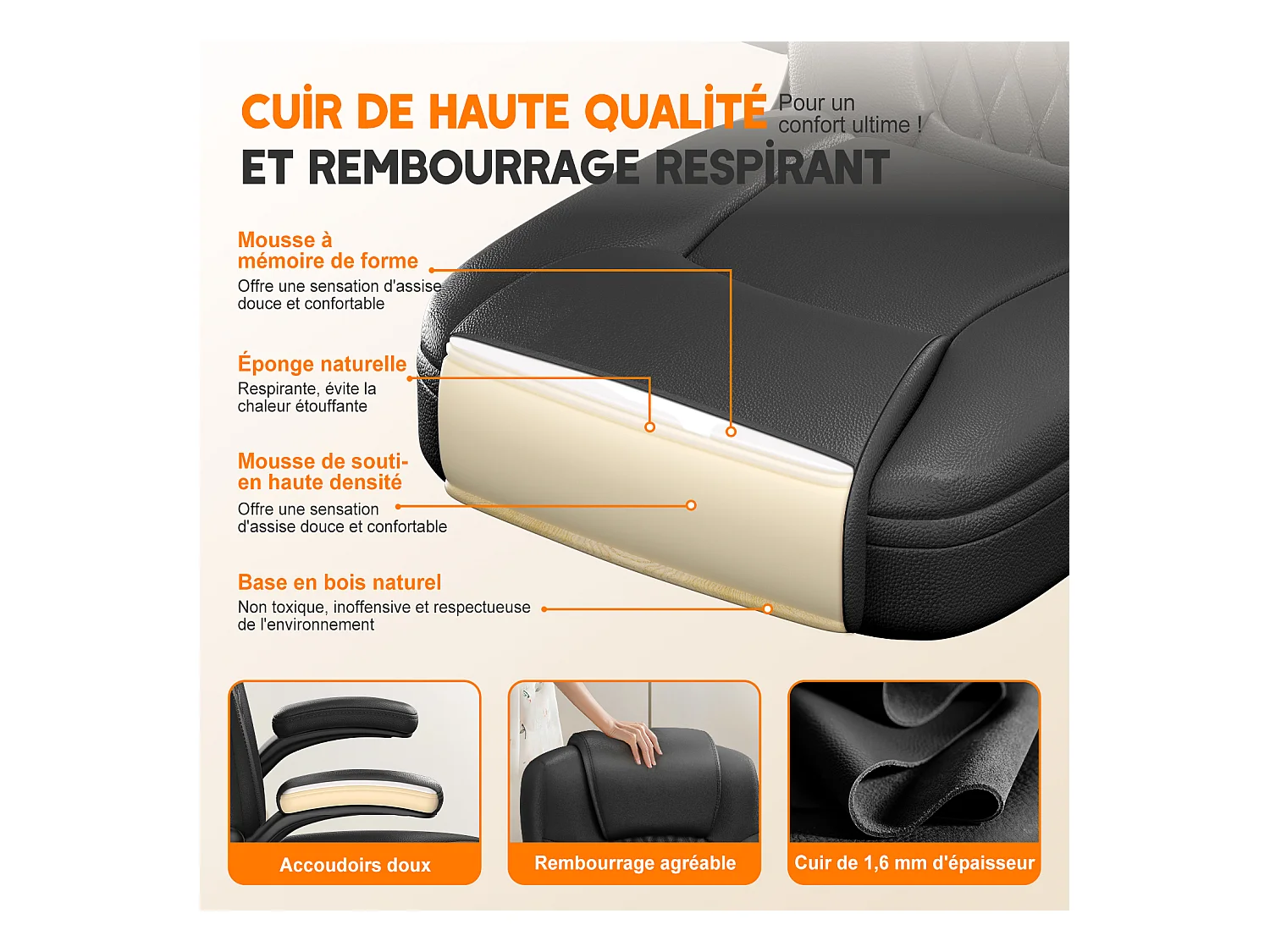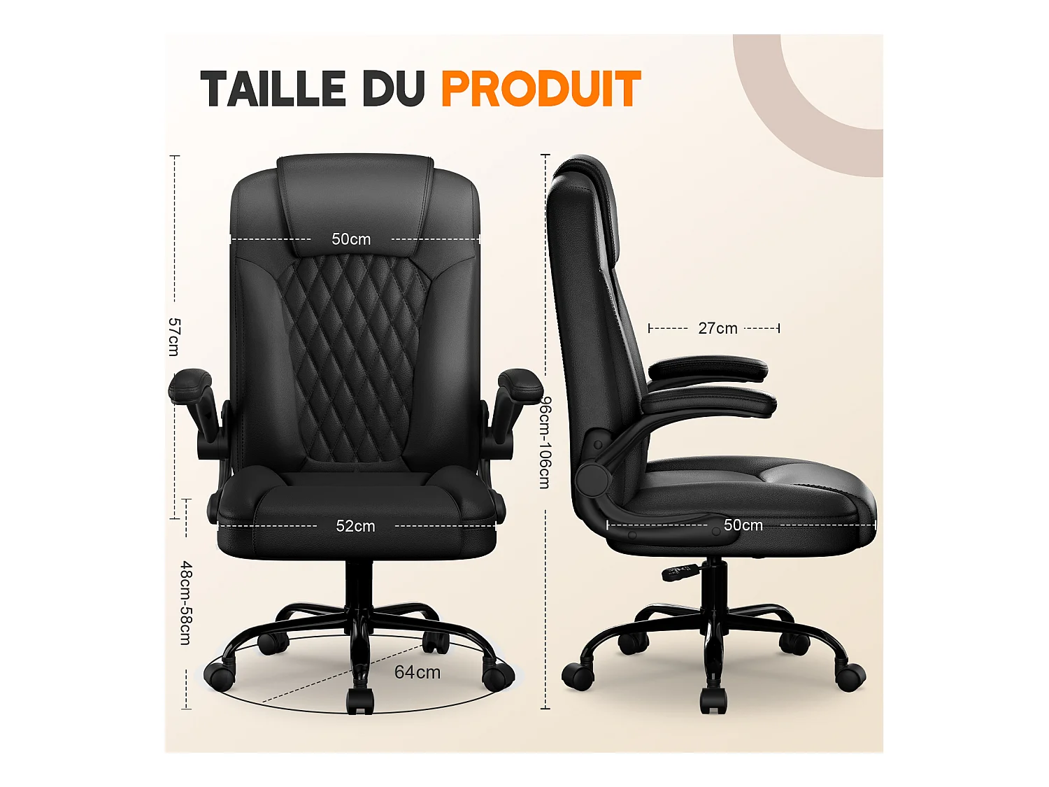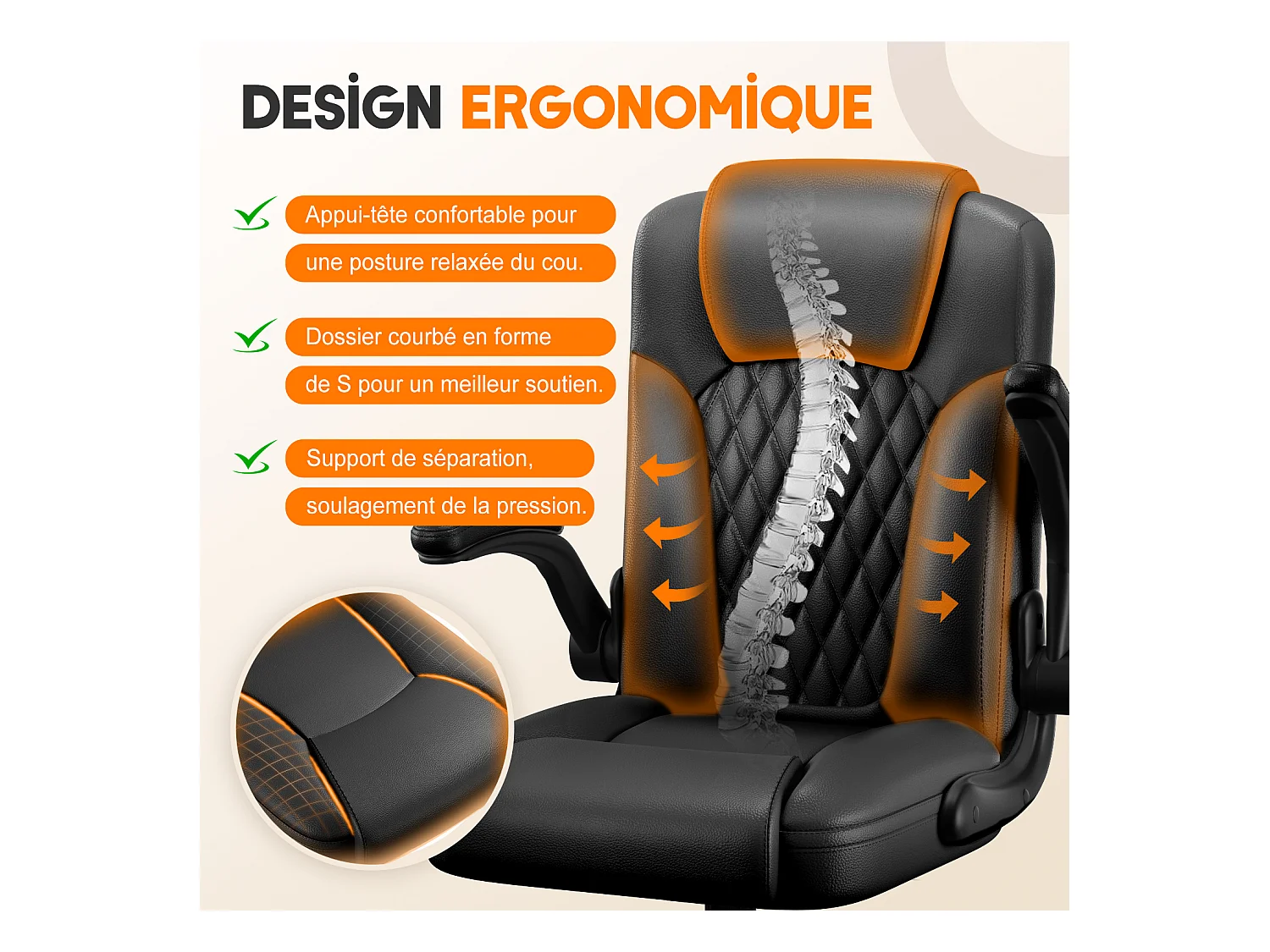 Hiazurm Chaise de Bureau Ergonomique - Chaise de Bureau avec Dossier 90°-120° - Chaises pour Adultes - Accoudoirs Pliables - Chaise de Bureau