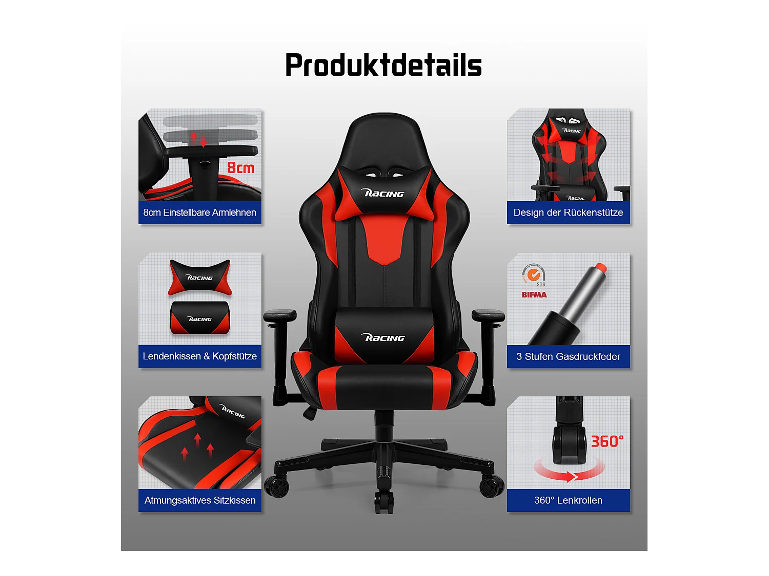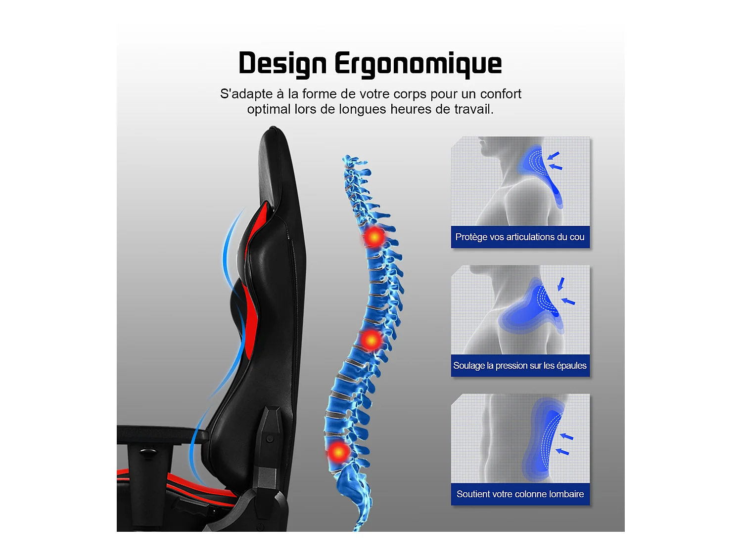Hiazurm Chaise Gaming - Chaise de Jeu avec Dossier Réglable 90°-165° - Style Racing - Poids Max 150 kg