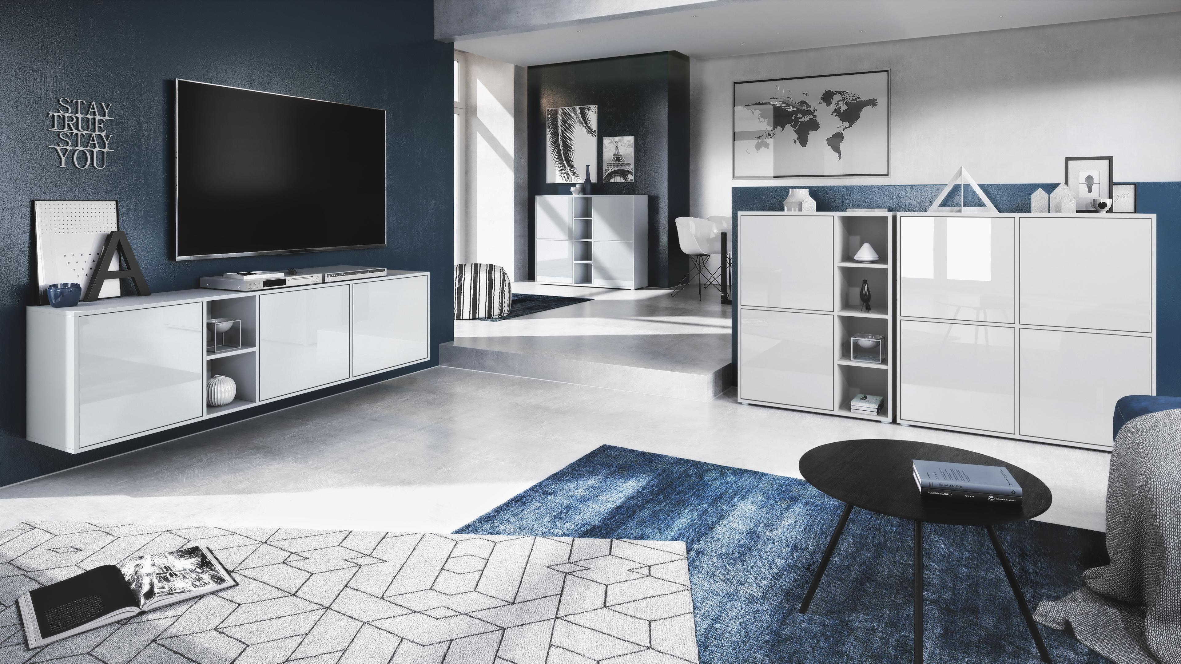 Highboard Cuba V2 Placard 104 x 105,5 x 35,5 cm Buffet à 8 compartiments, caisson en noir mat / façades en Noir mat