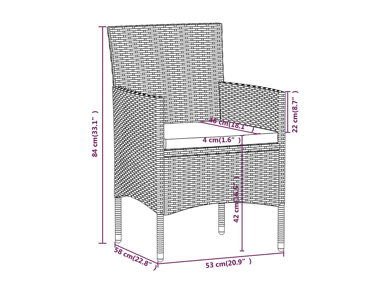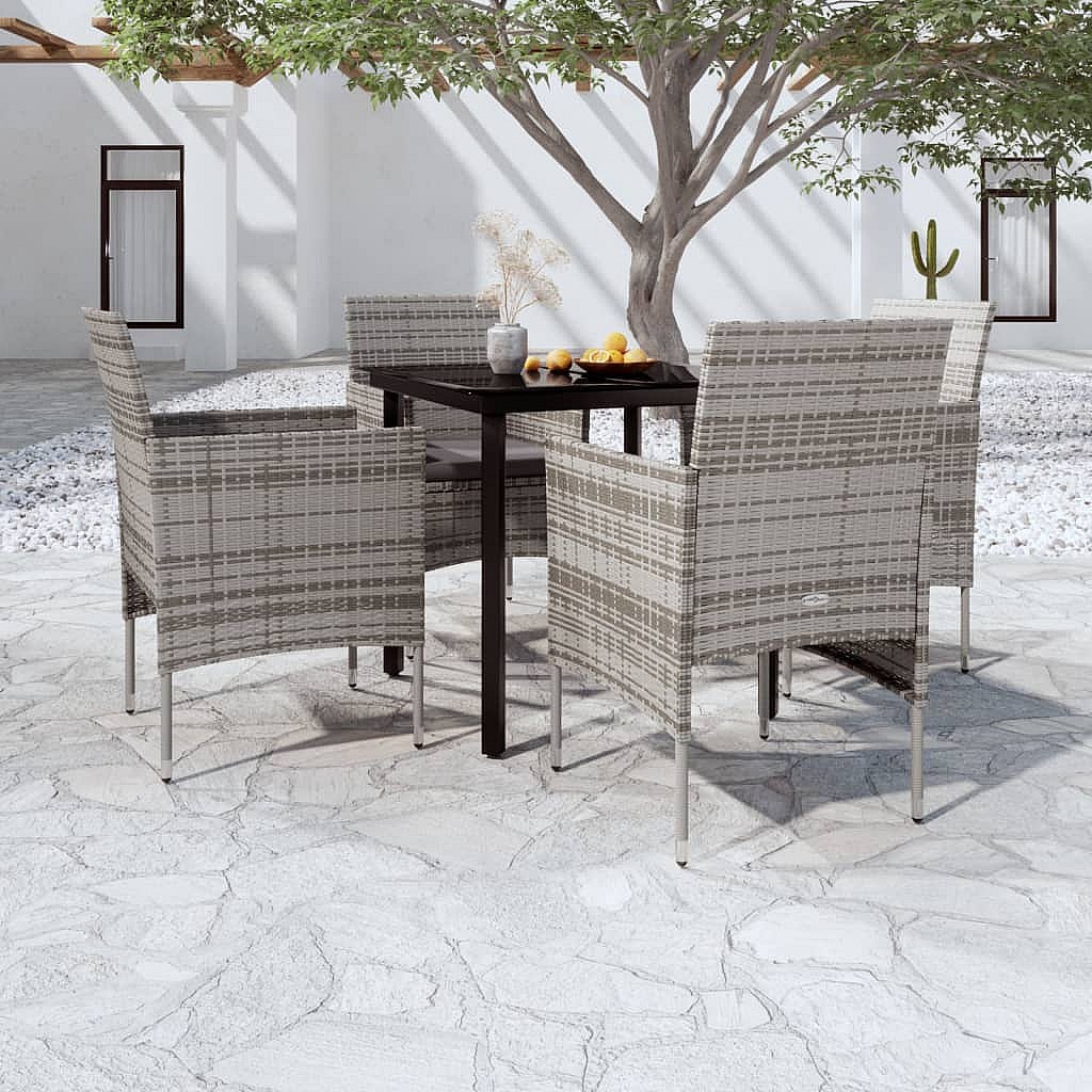 Hillsboro Ensemble à manger de jardin et coussins 5pcs Gris/noir