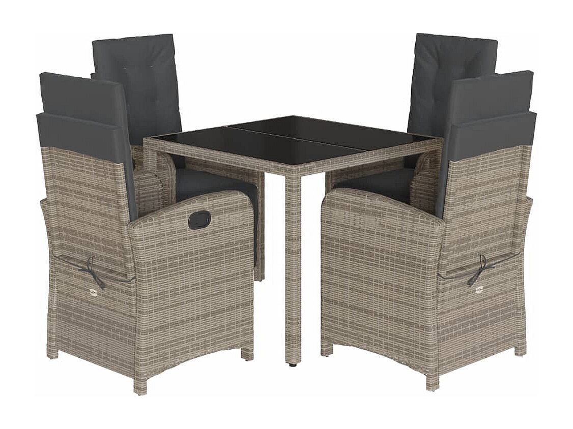 Hillside Ensemble à manger de jardin 5 pcs coussins gris résine tressée