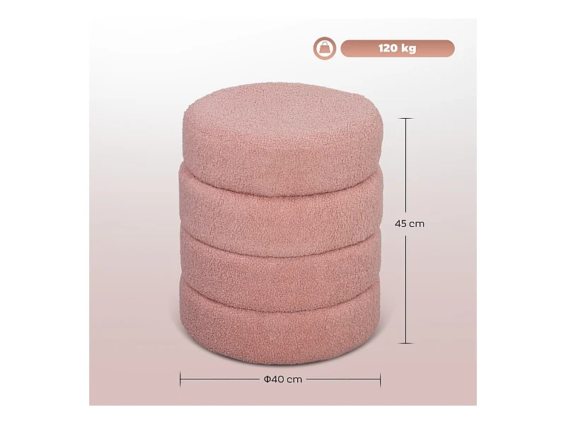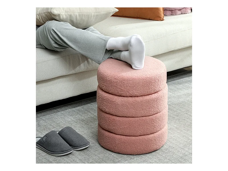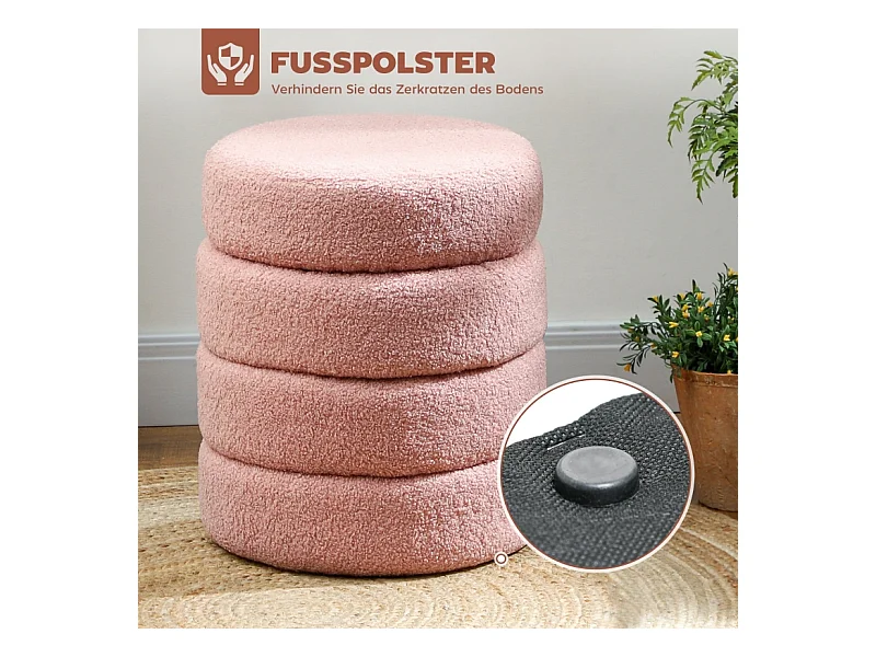 Hocker rond, Teddyfleece, facile à déplacer, jusqu'à 120kg, Rose (Φ40x45 cm)