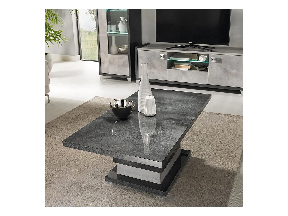 HOFFMAN - Table Basse à Pied Central Gris Aspect Pierre