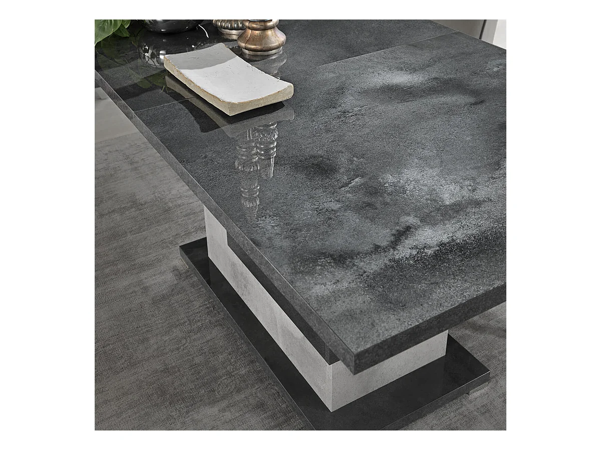 HOFFMAN - Table de Repas Allongeable à Pied Central Gris Aspect Pierre