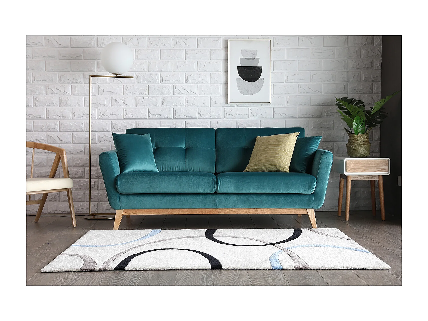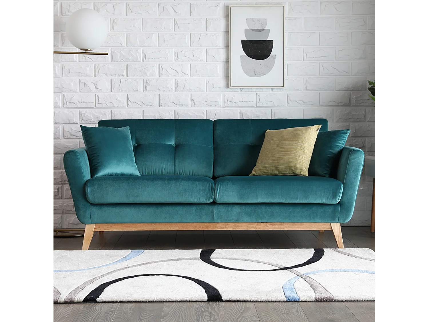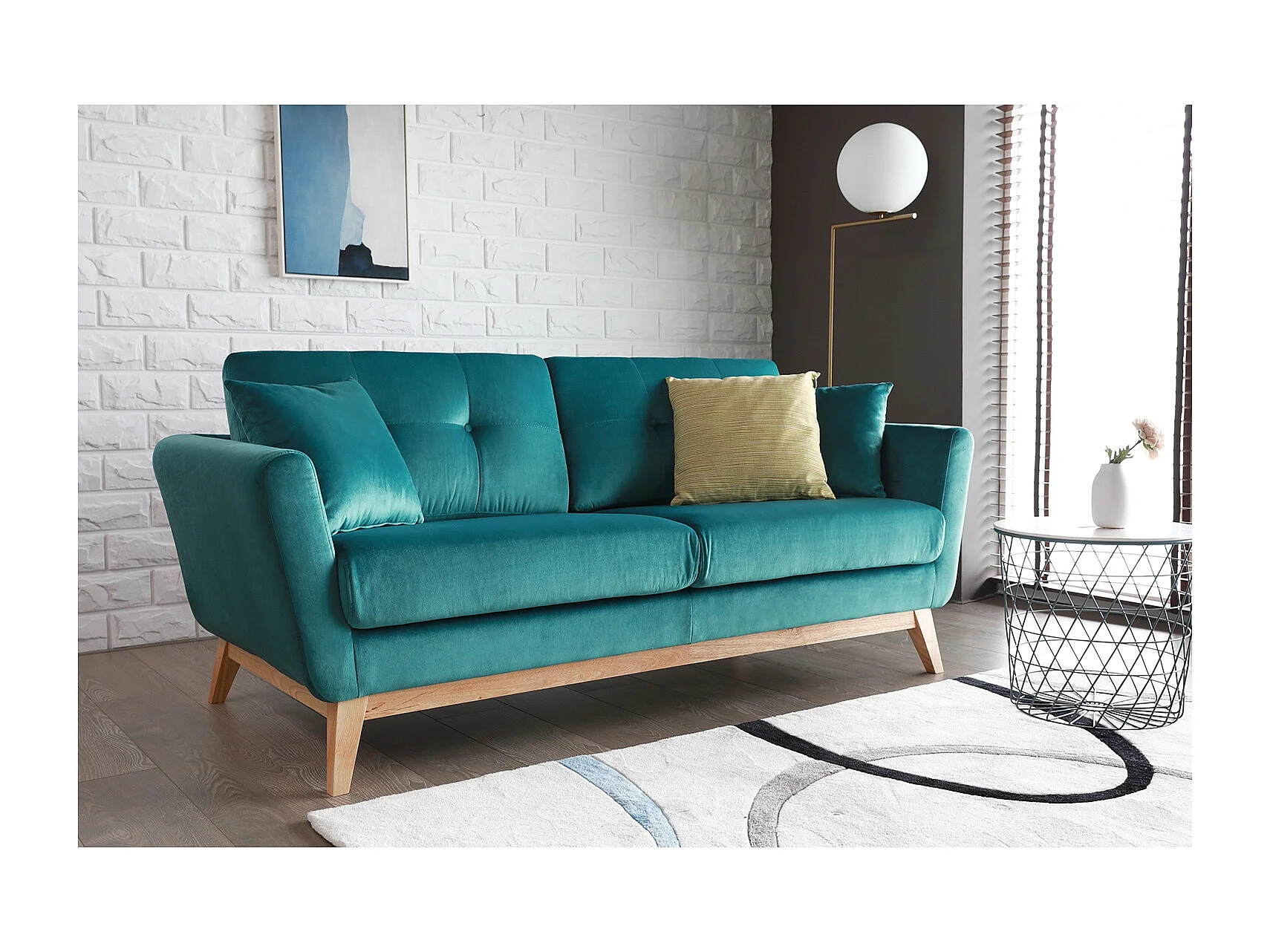 Canapé 3 places en velours vert HOGA