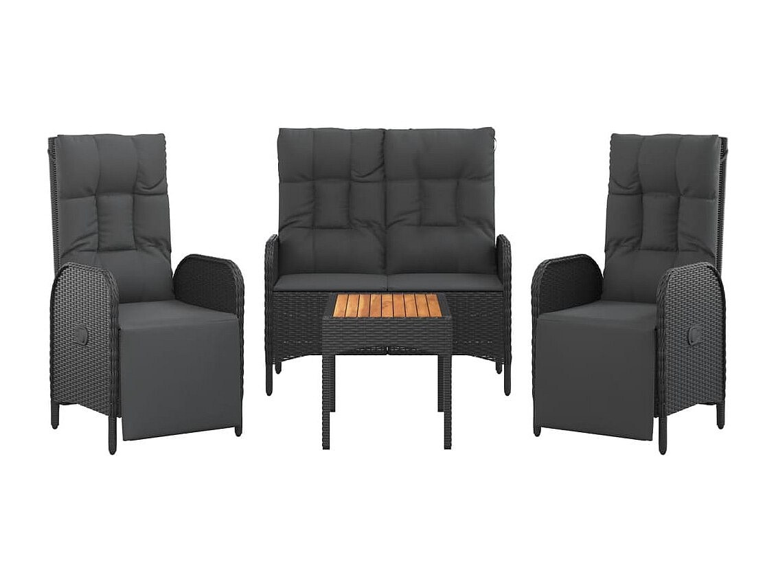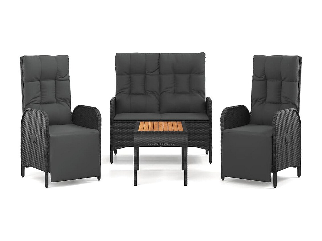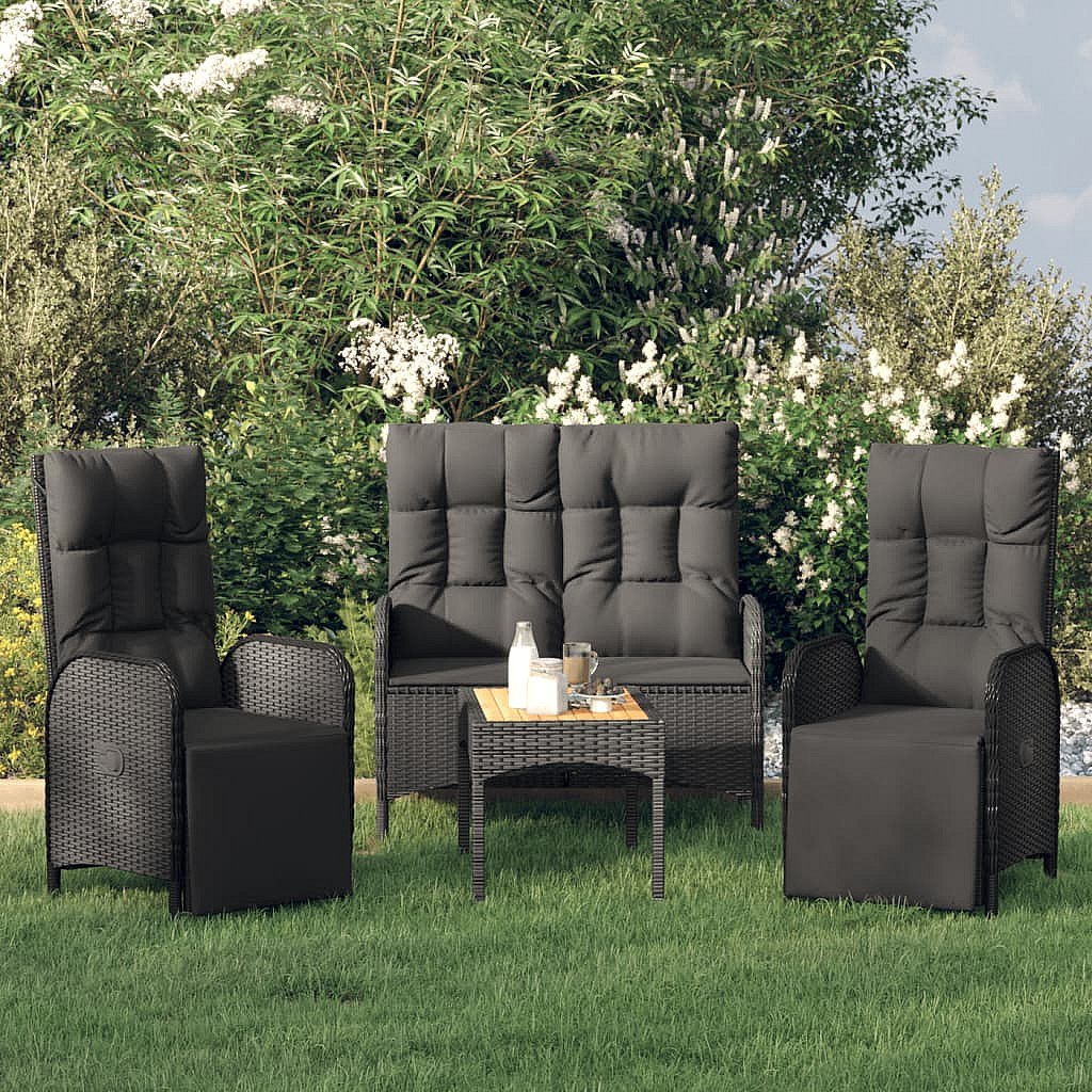 Holbaek Ensemble à manger de jardin 4 pcs avec coussins noir