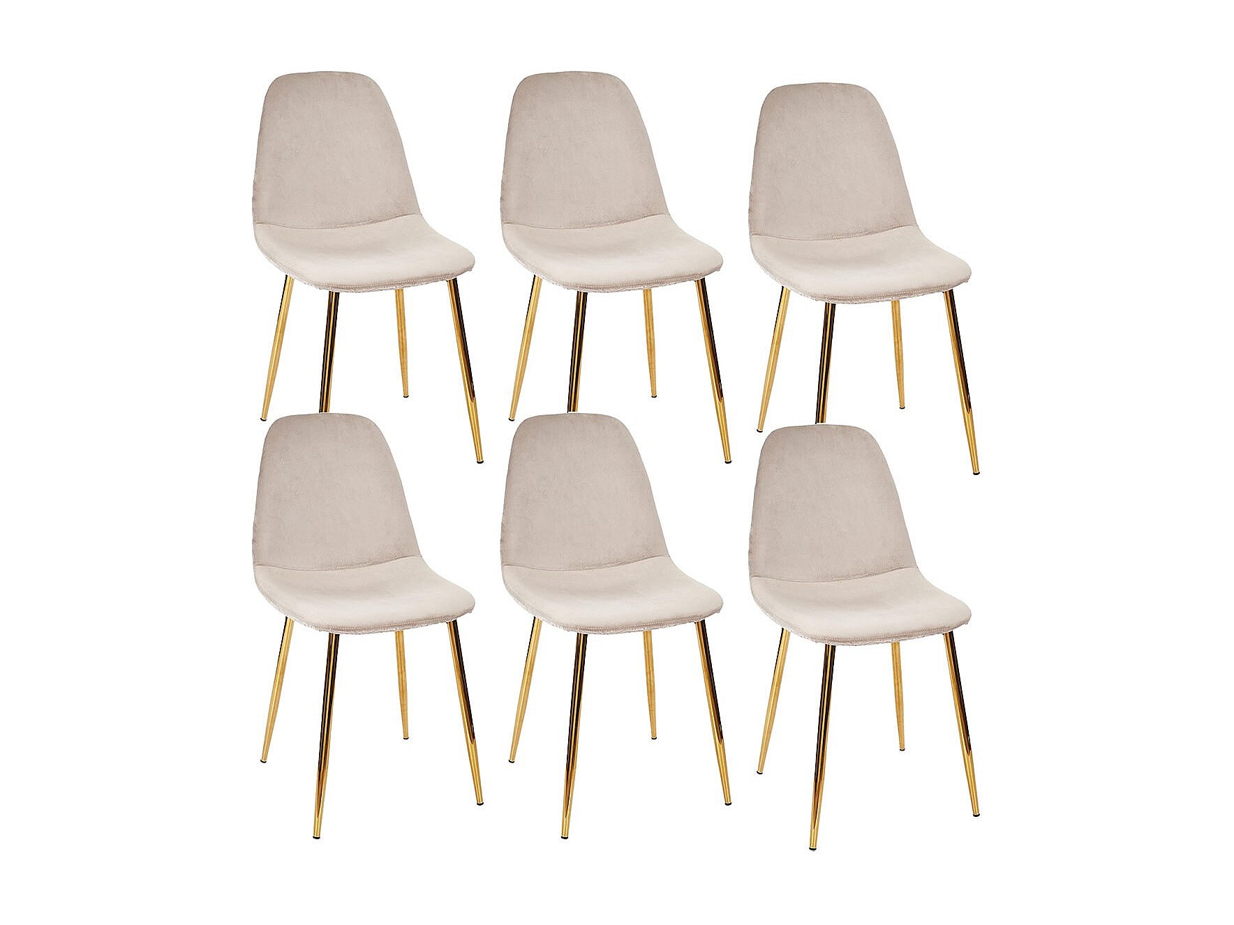 HOLLA - Lot de 6 Chaises Taupe Motif Ecailles Piétement Gold