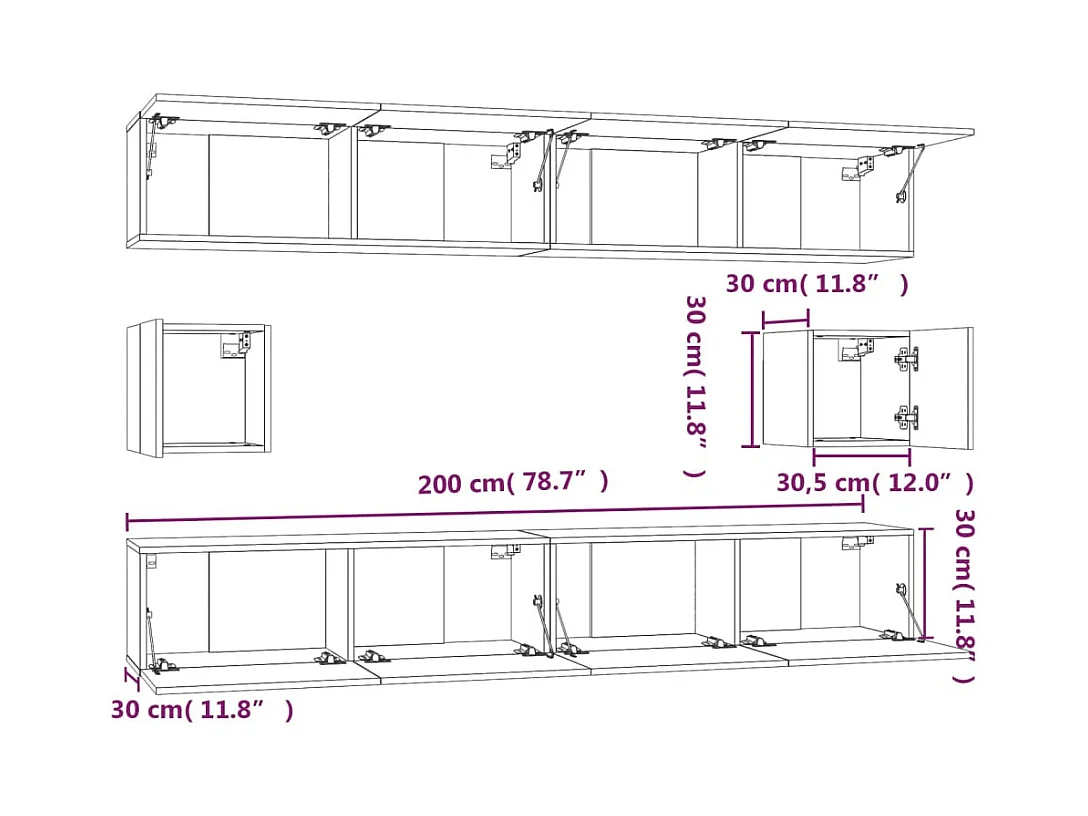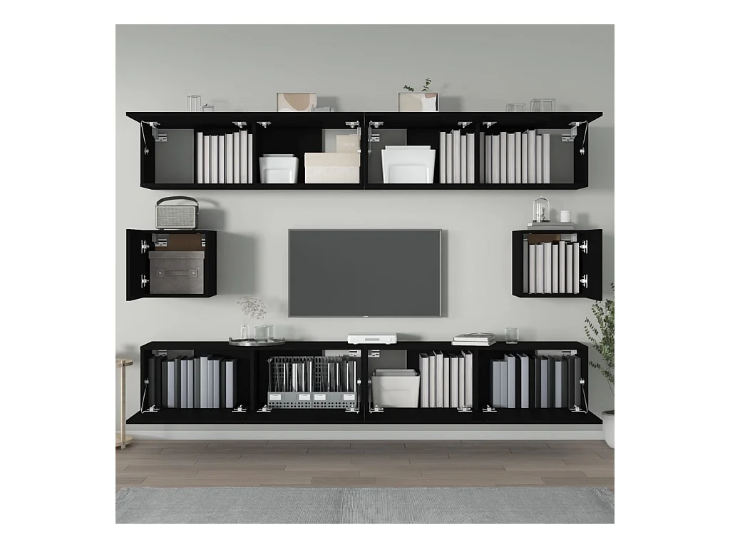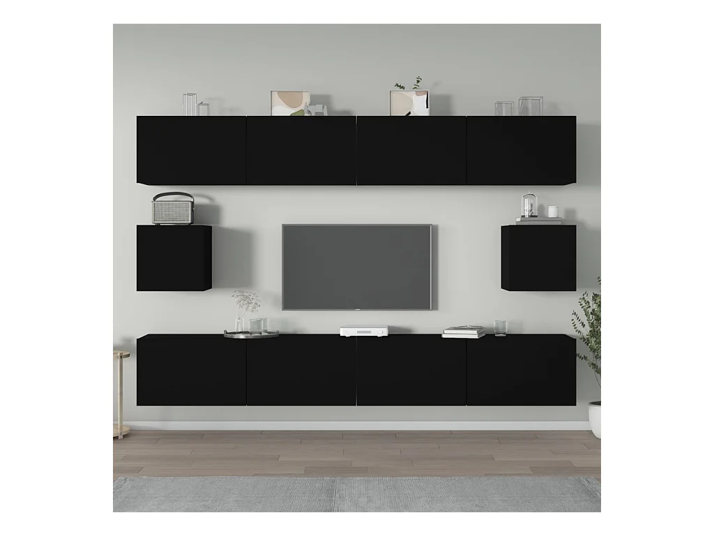 Hollola Ensemble de meubles TV 6 pcs Noir Bois d'ingénierie