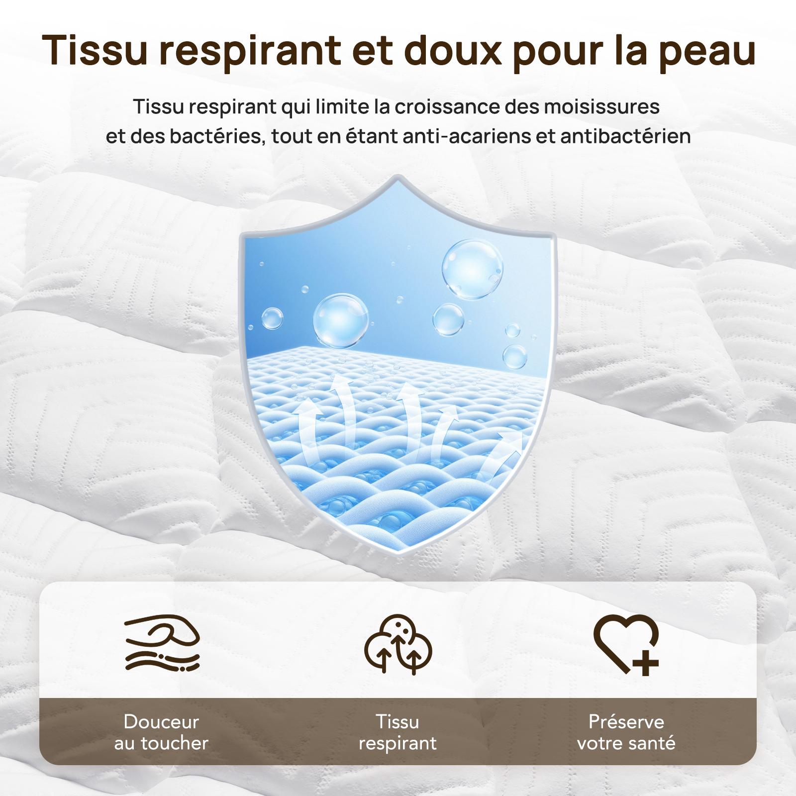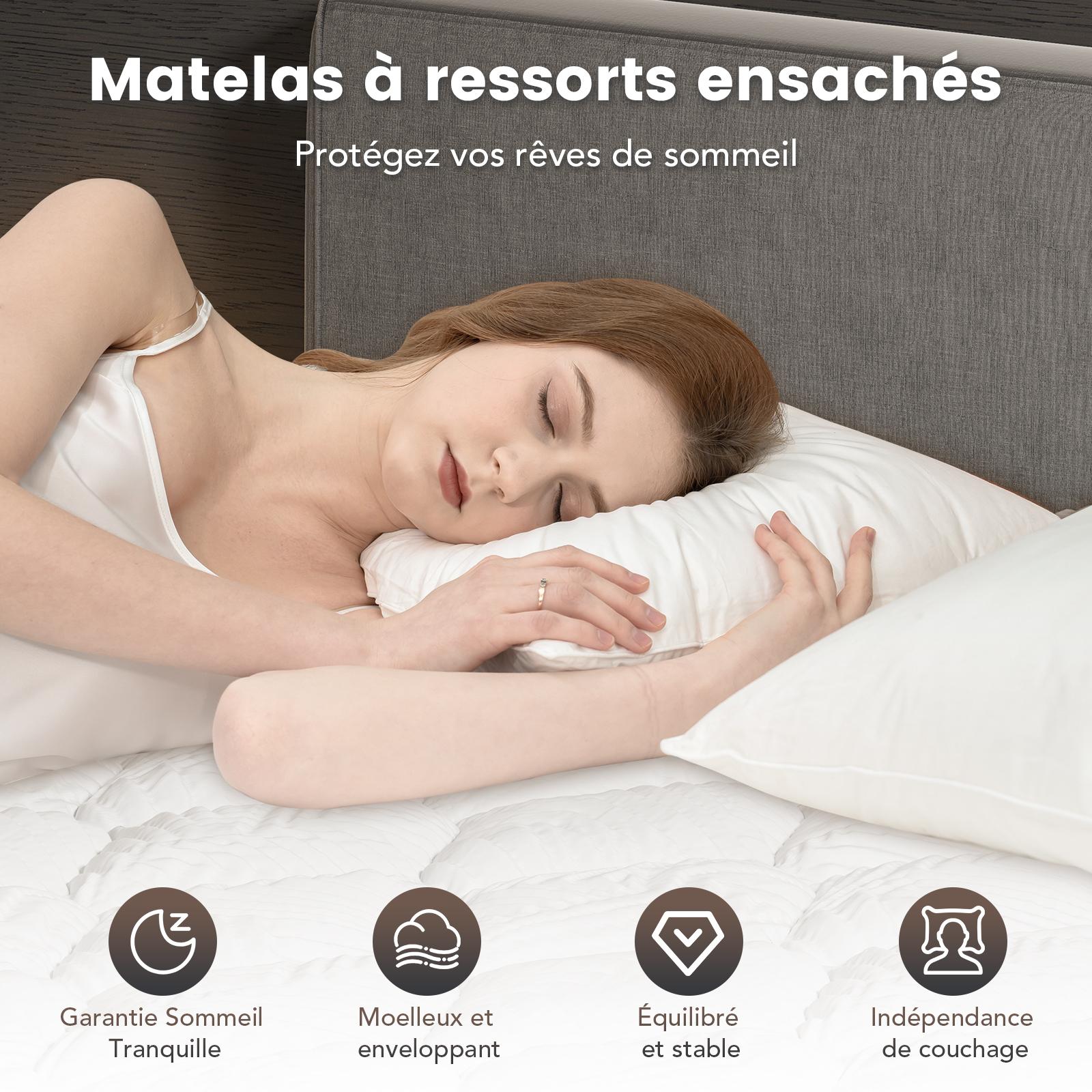 Matelas 180 x 200 cm ressorts ensachés 7 zones, soutien ferme H3, mousse confort ép. 25 cm - HOMAVO