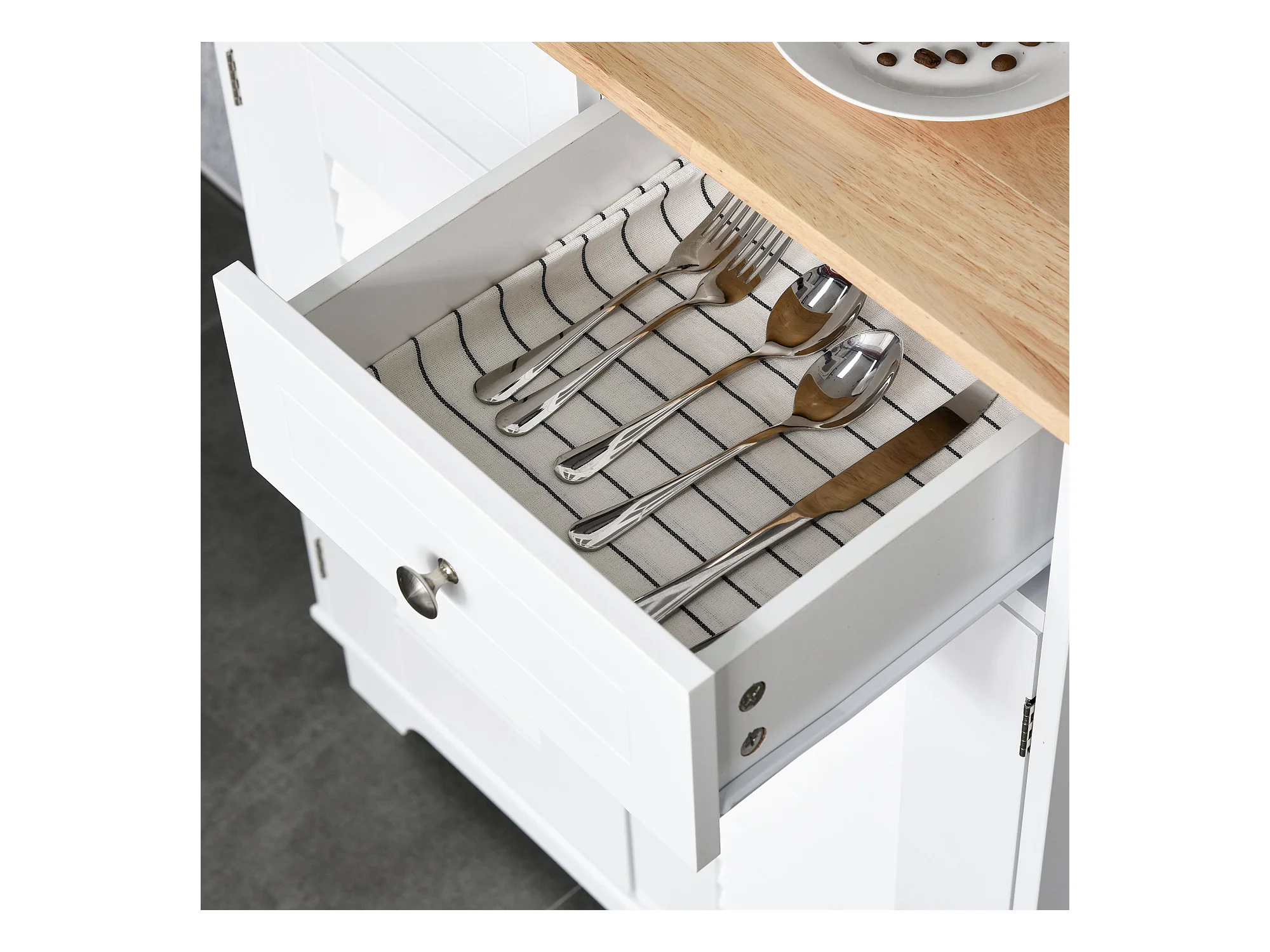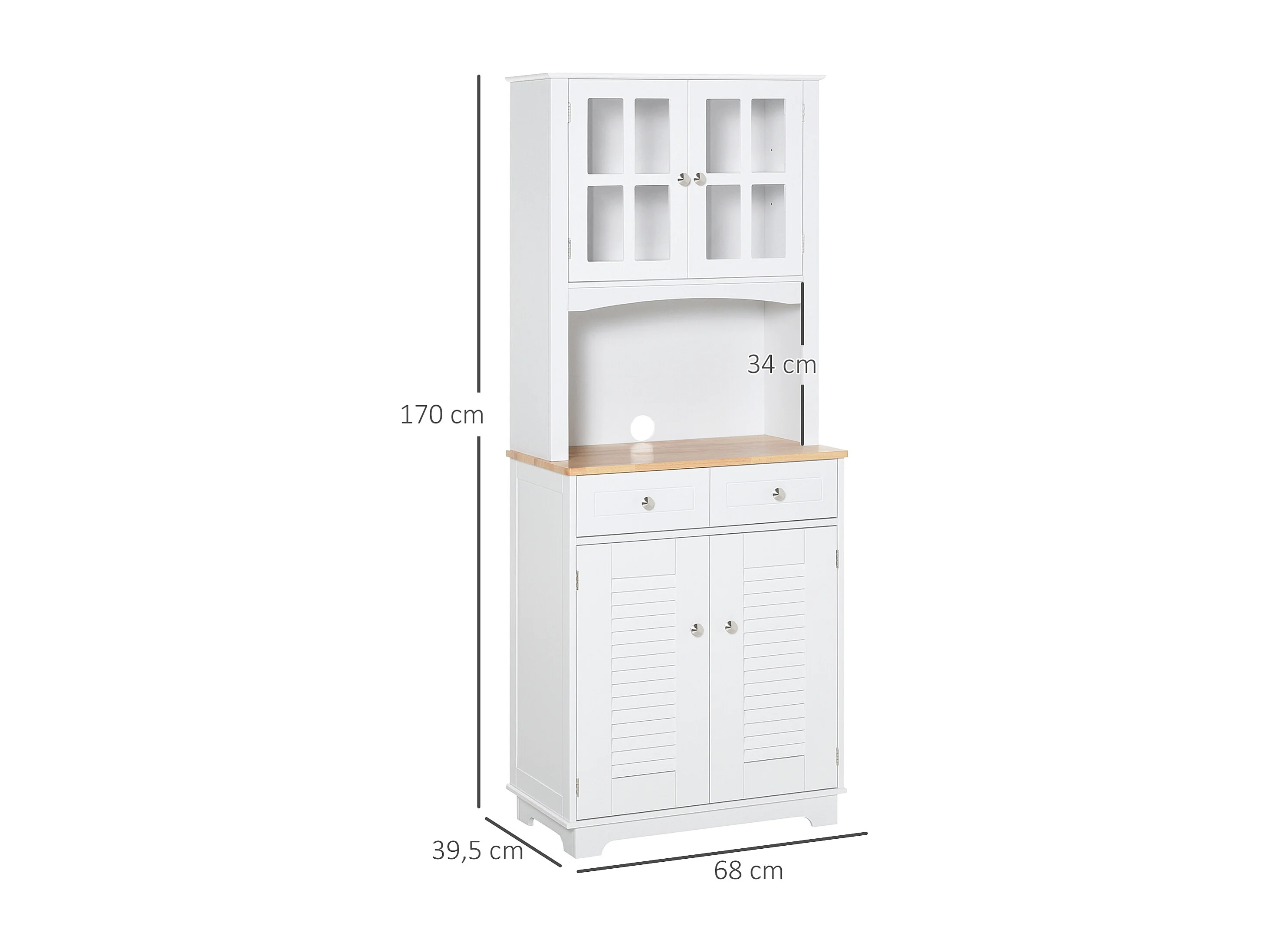 Armoire de cuisine 2 placards 2 portes persiennes et acryliques 2 tiroirs grande niche bois caoutchouc MDF blanc