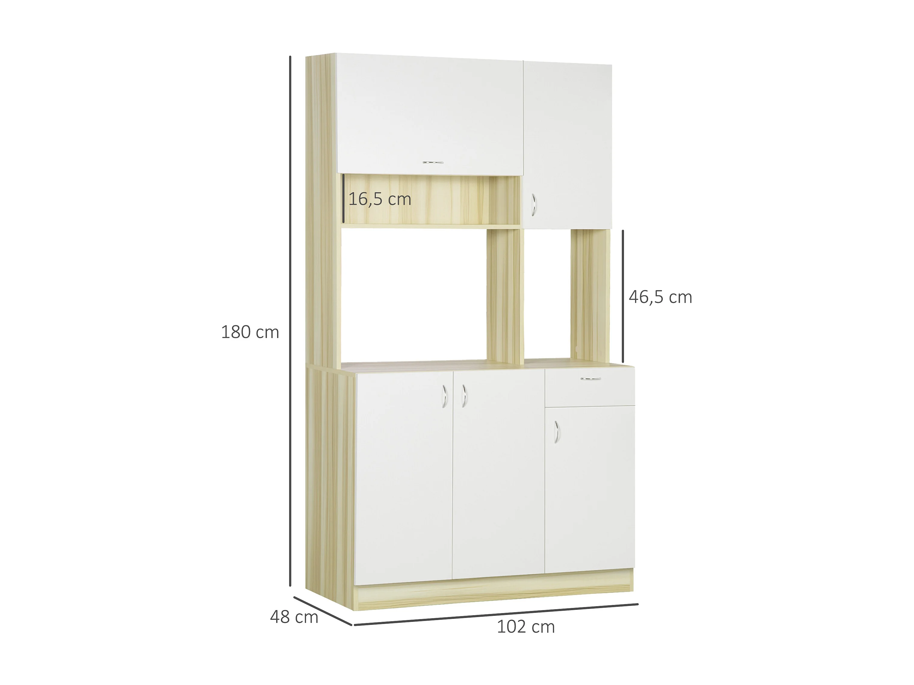 HOMCOM Armoire de cuisine contemporaine rangement- buffet haut - 5 portes, 1 tiroir, 3 niches - 102 x 48 x 180 cm