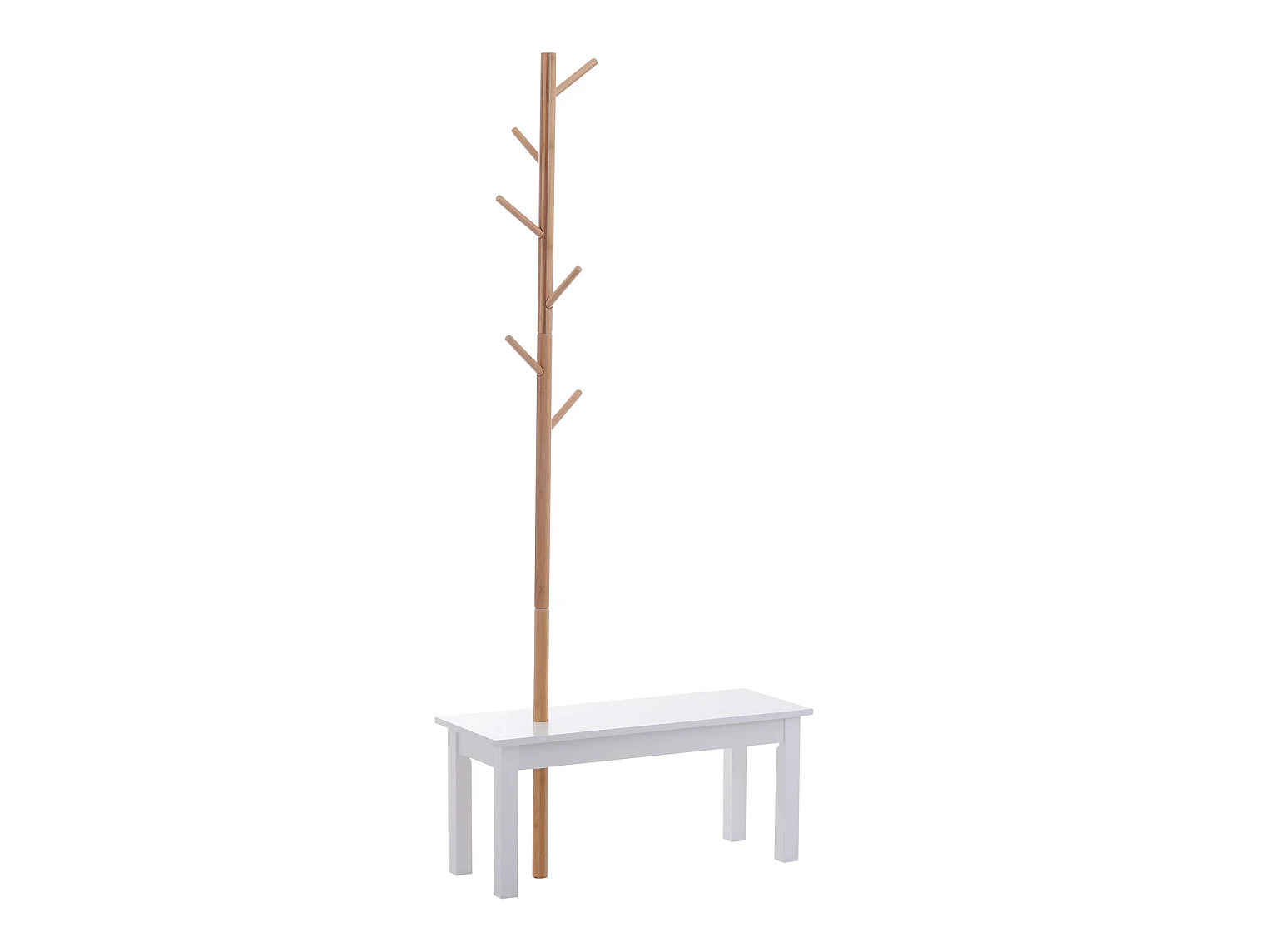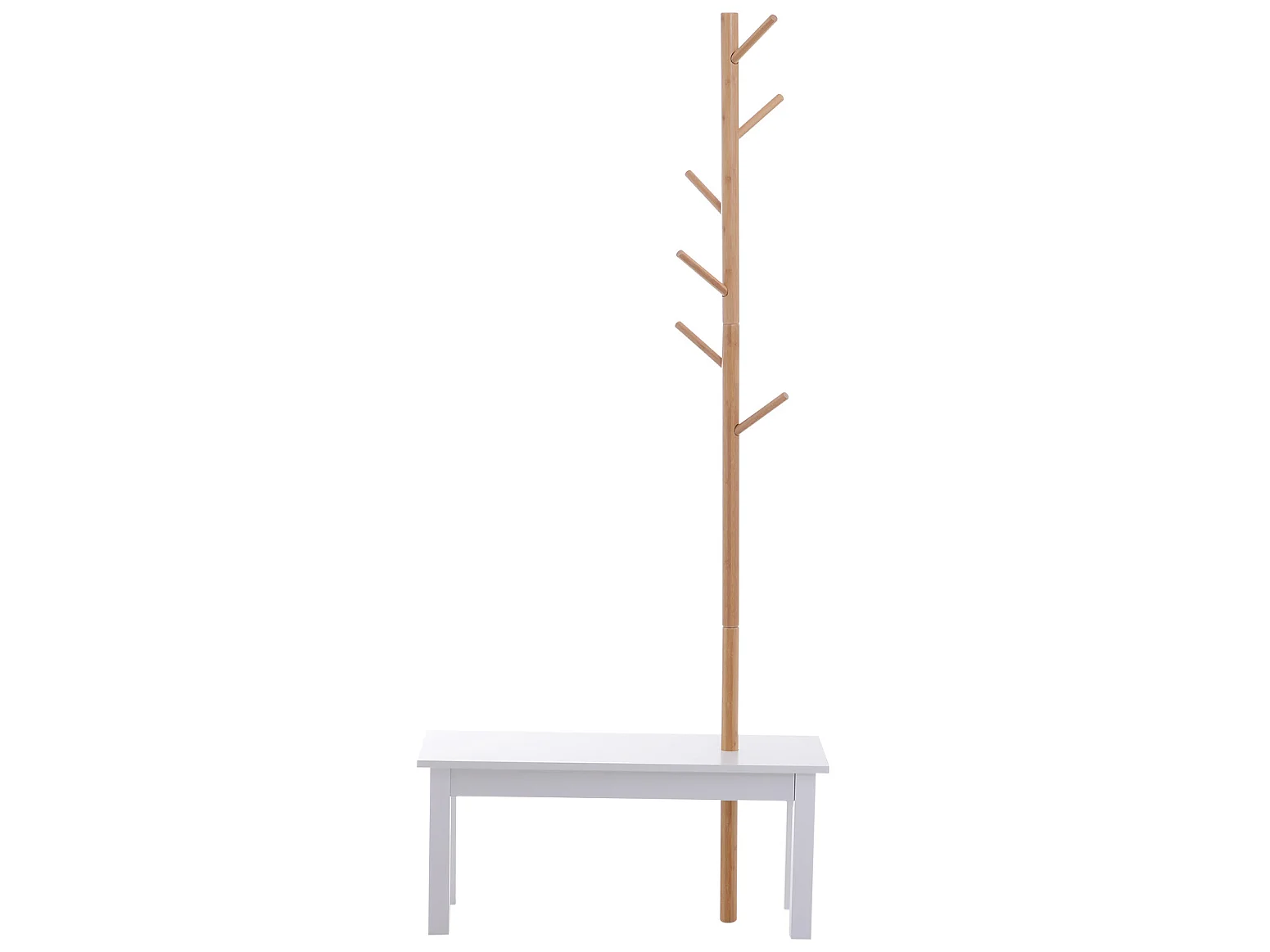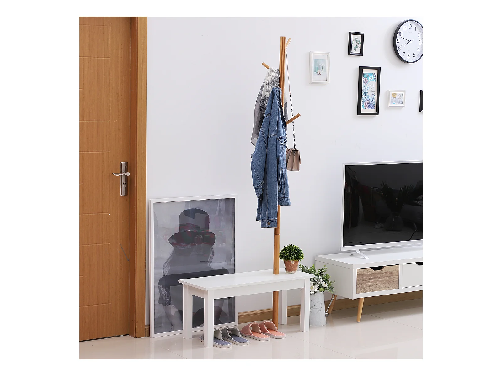 HOMCOM Banc porte-manteaux 2 en 1 design contemporain cosy dim. 80L x 30l x 180H cm MDF blanc bois massif bambou