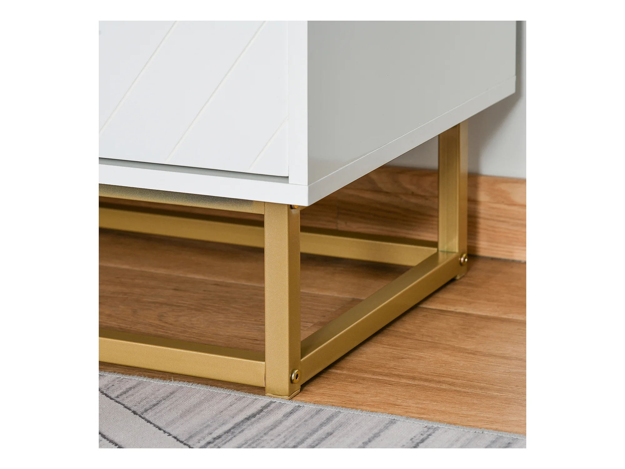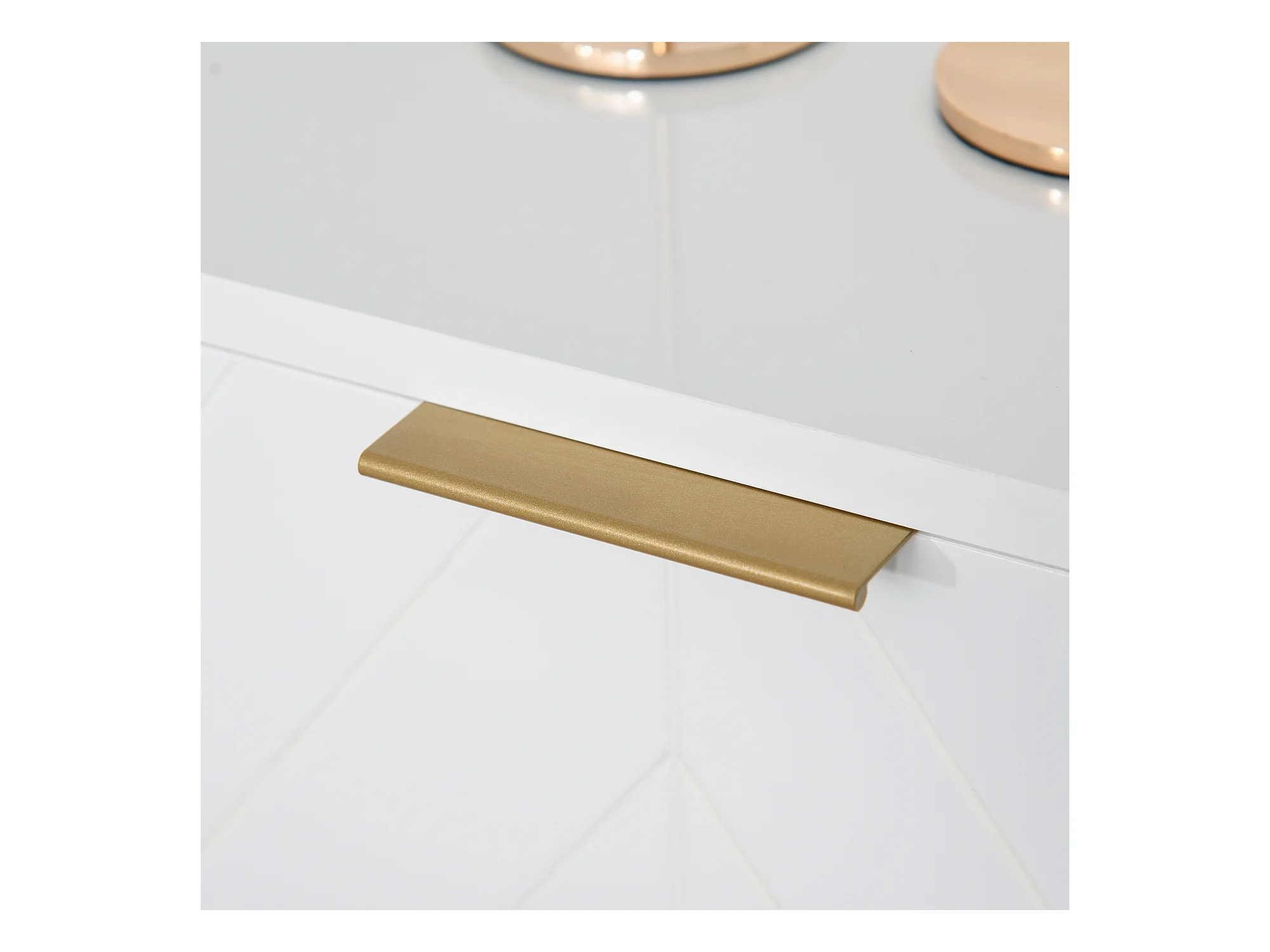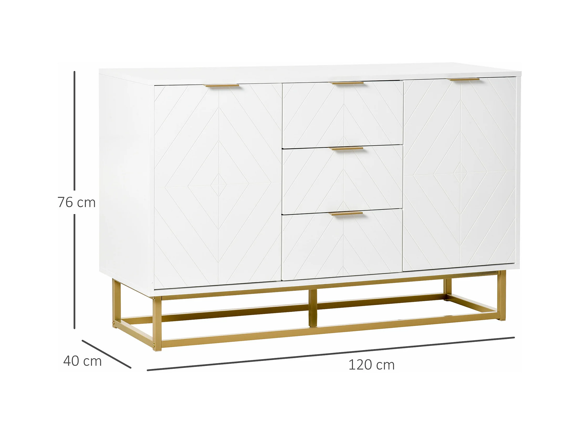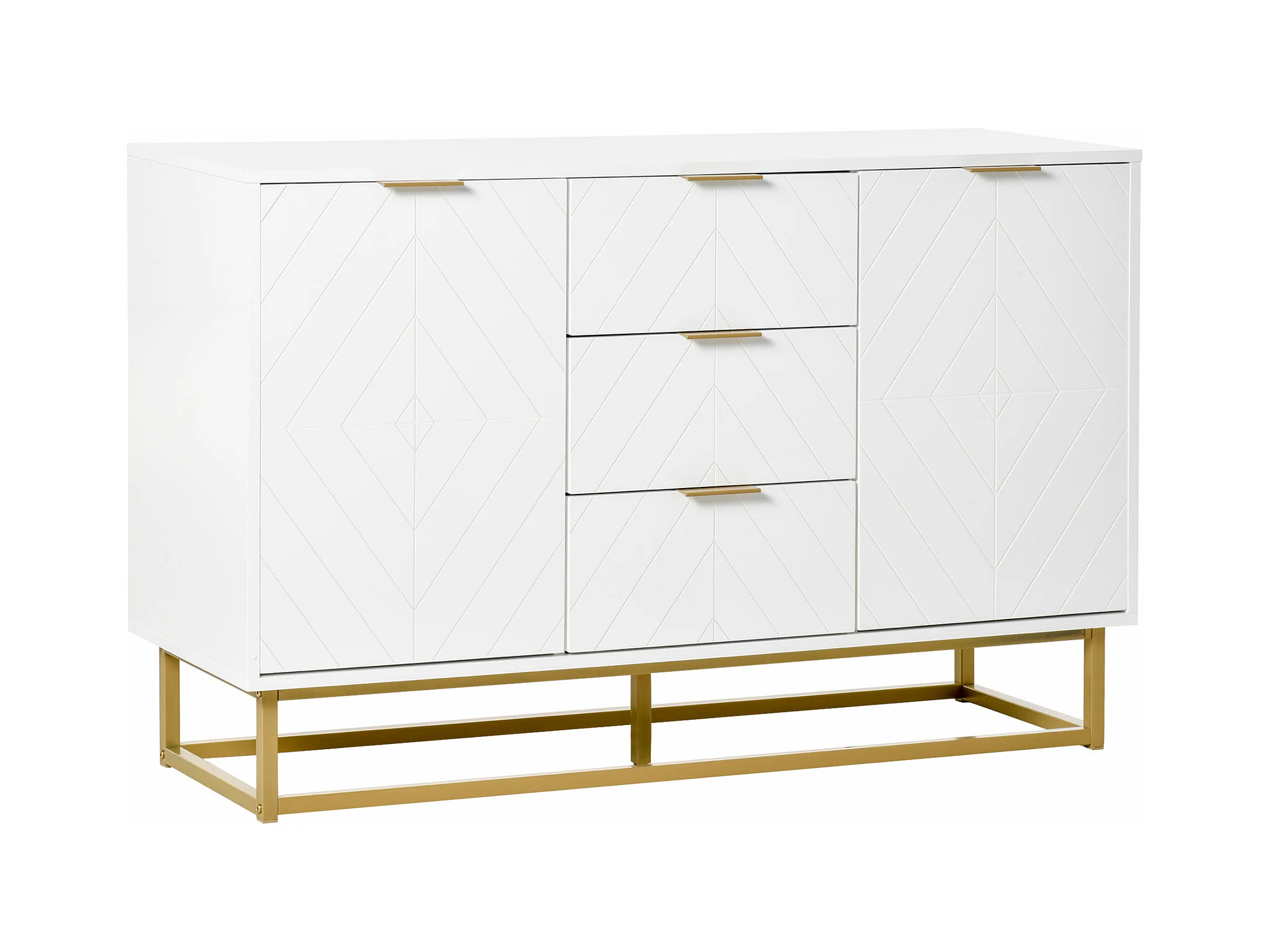 Buffet design contemporain graphique 2 placards porte étagères réglables 3 tiroirs coulissants MDF blanc métal doré