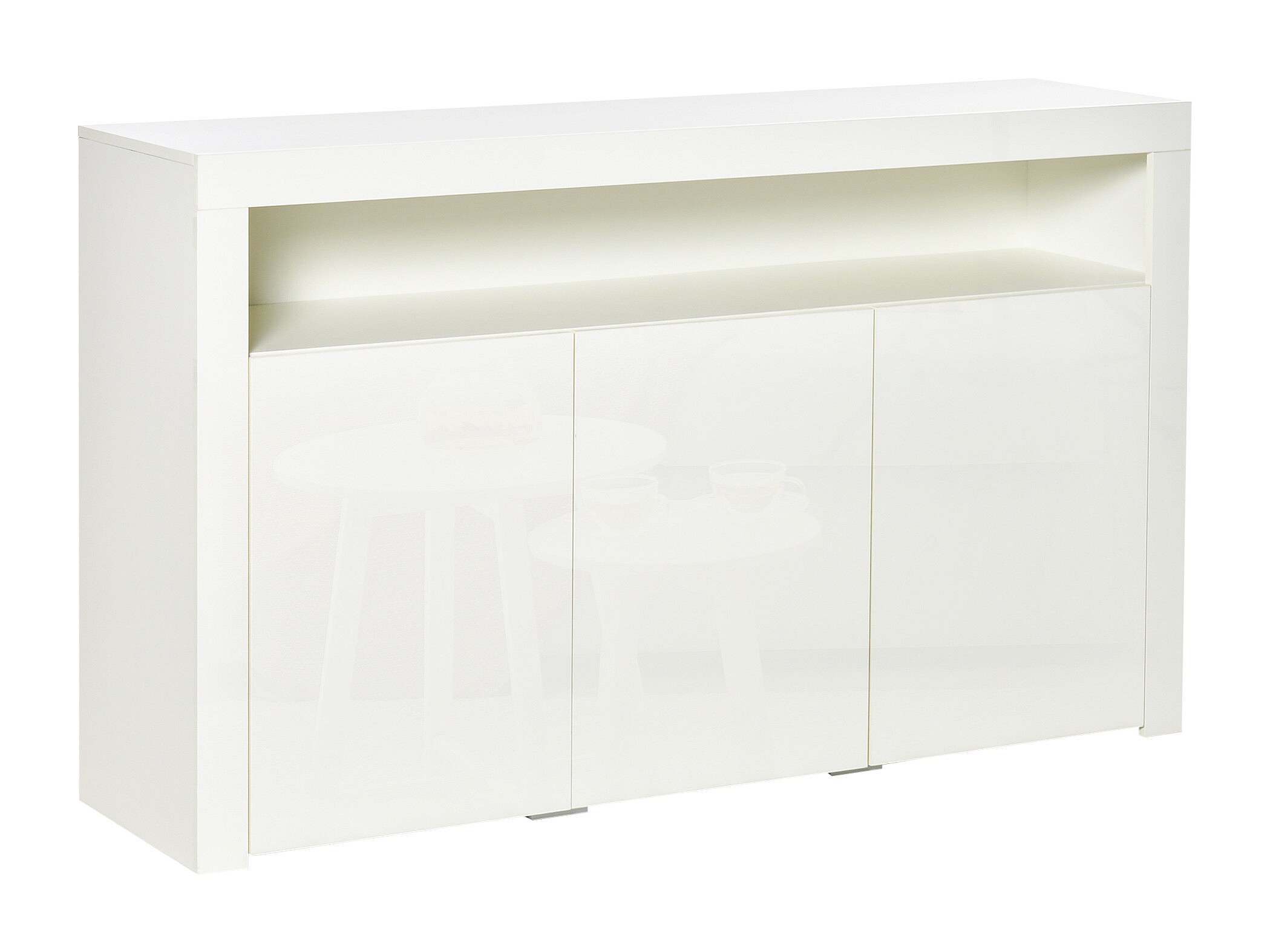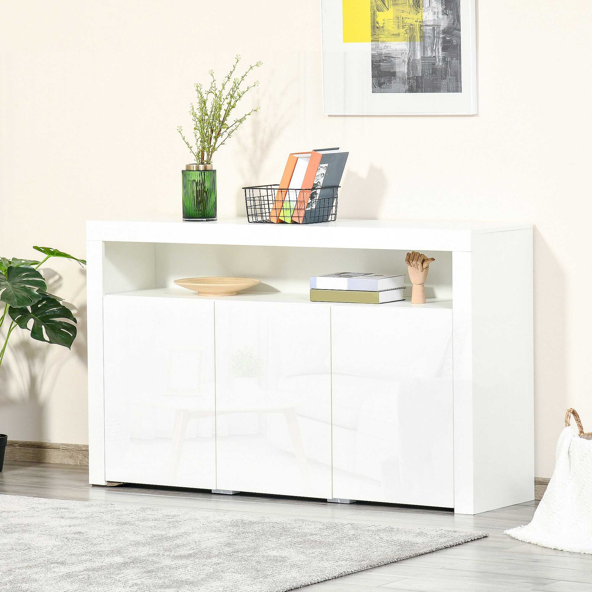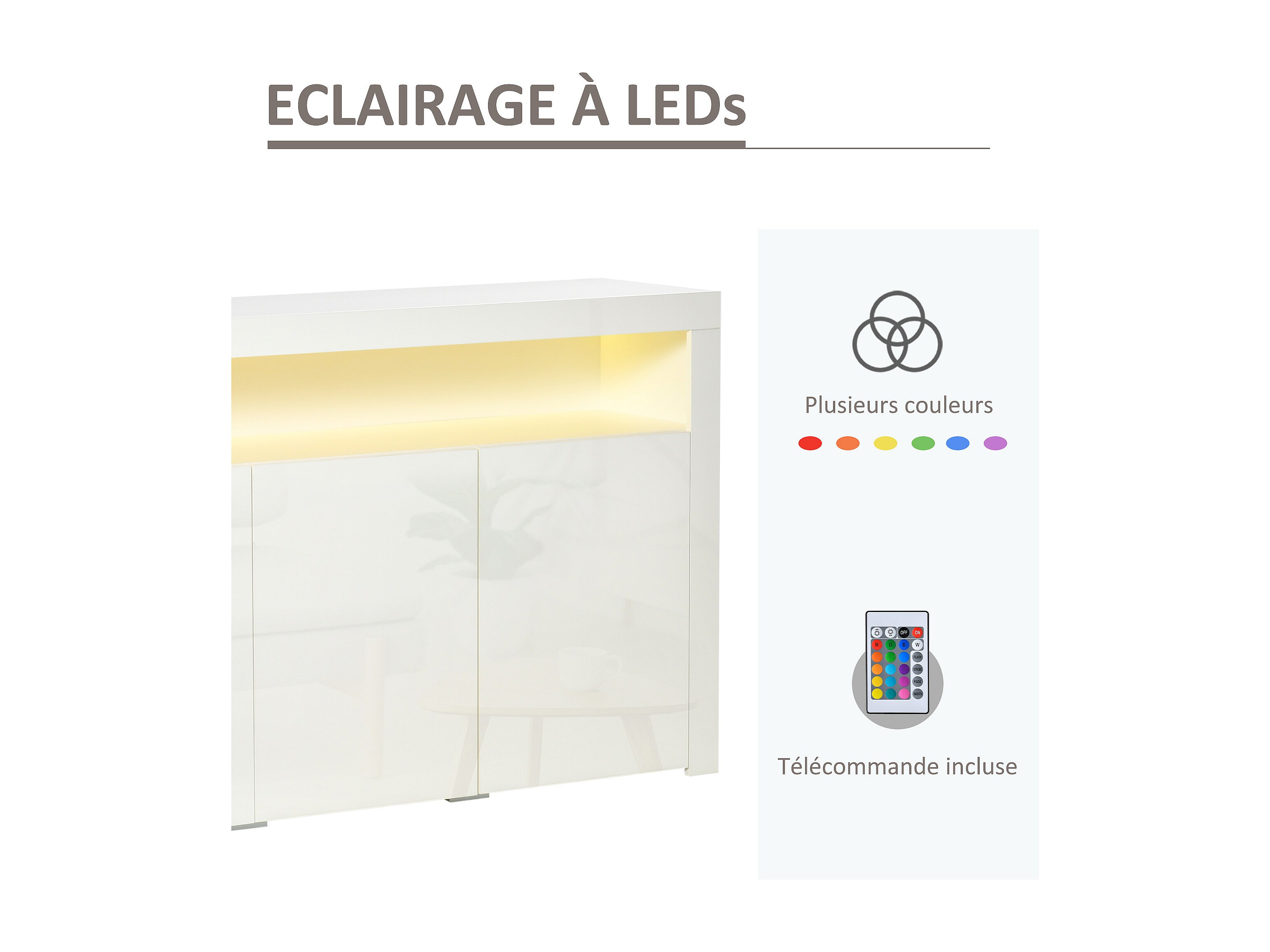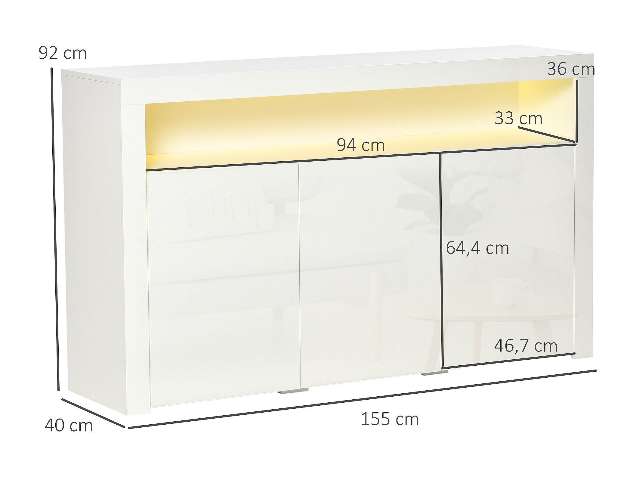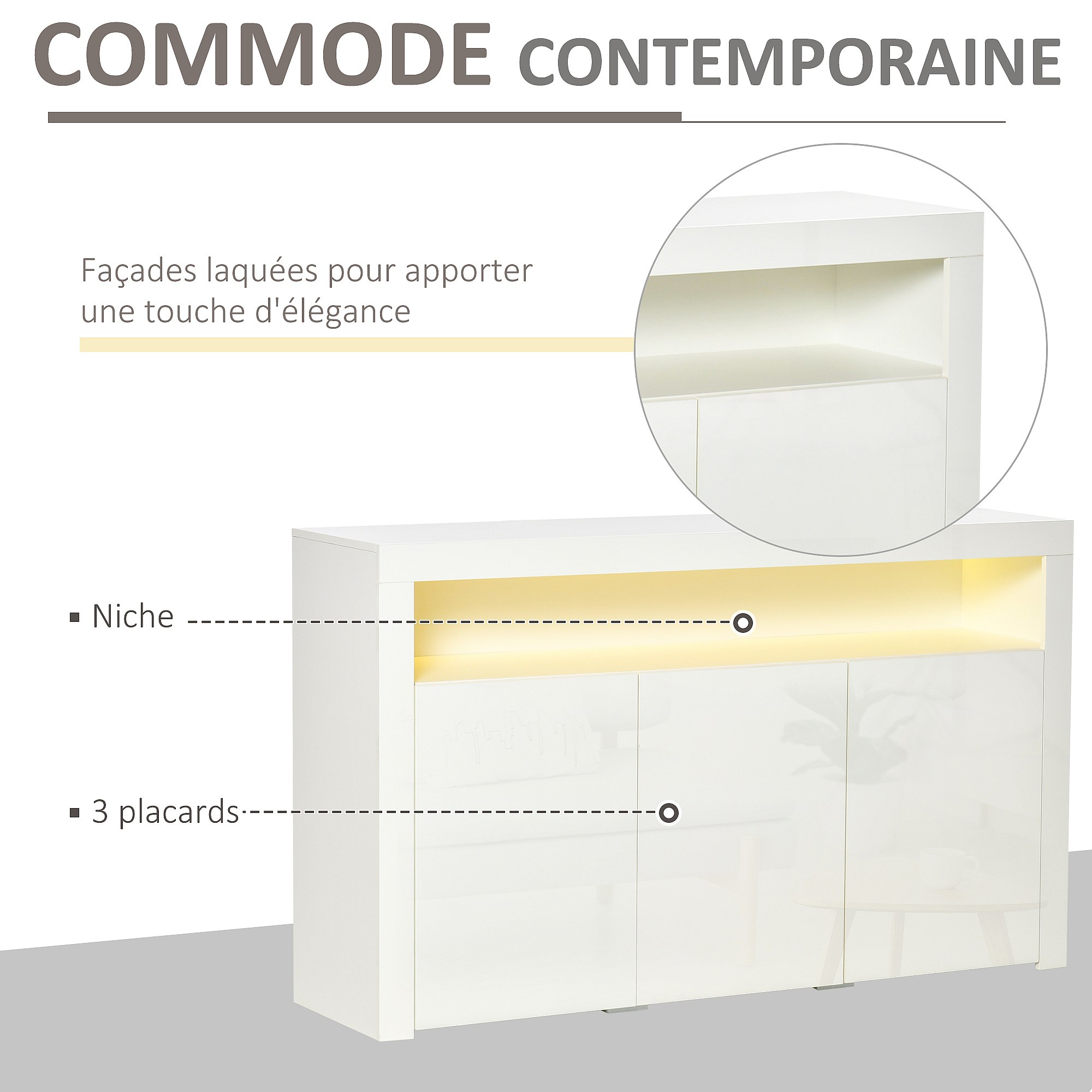 HOMCOM Buffet LED - meuble de rangement LED - 3 placards avec étagère et grande niche - panneaux particules MDF blanc laqué