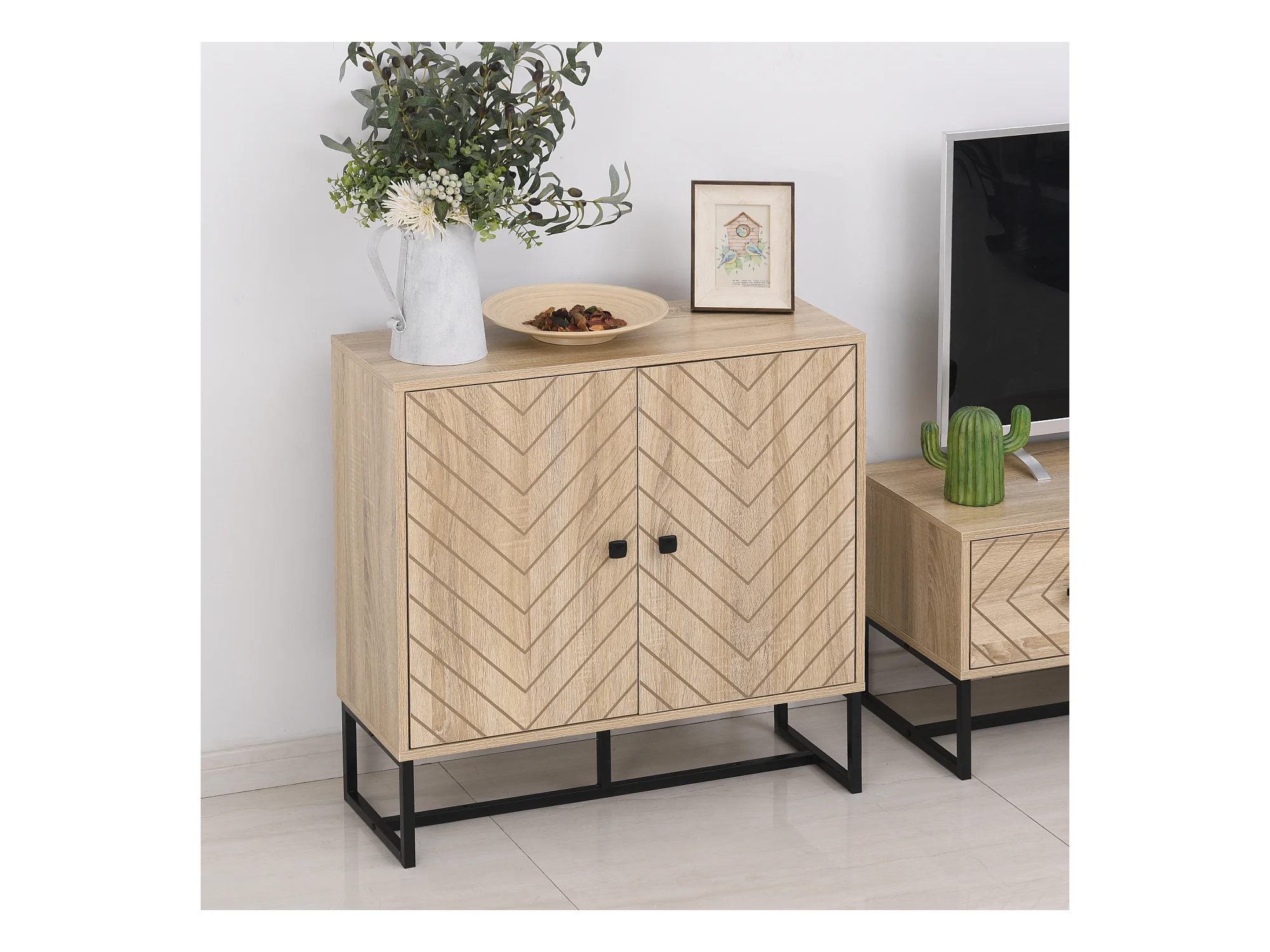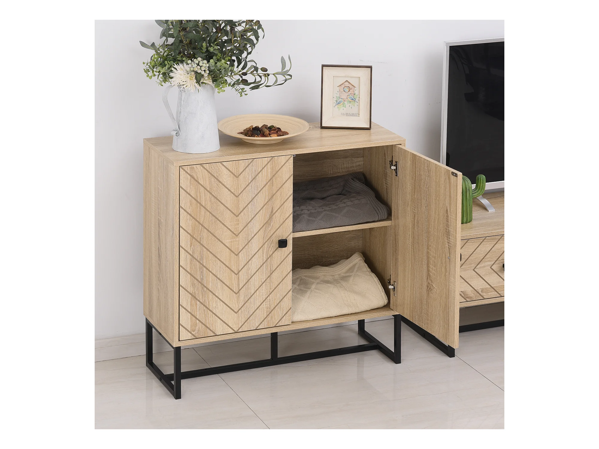 HOMCOM Buffet meuble de rangement 2 portes bois et pieds en métal noir dim. 80L x 29,5l x 80H cm