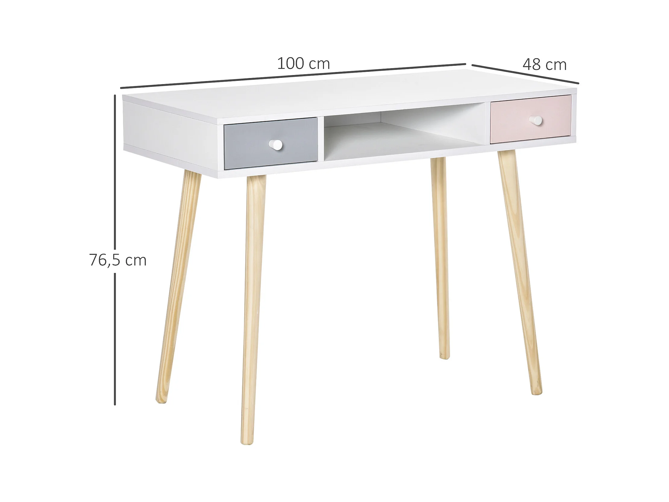 Bureau enfant style scandinave avec tiroir et compartiment de rangement 100L x 48l x 76,5H cm MDF et pin blanc gris et rose