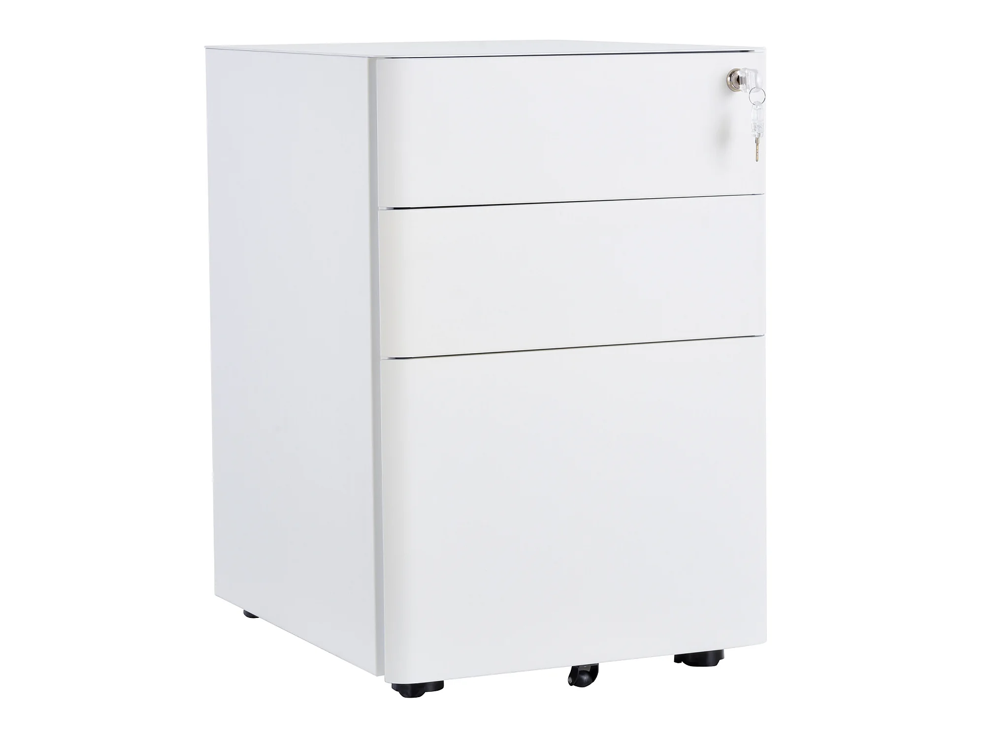 Caisson de bureau rangement bureau sur roulettes 3 tiroirs 1 verrouillable 1 trieur dossiers blanc