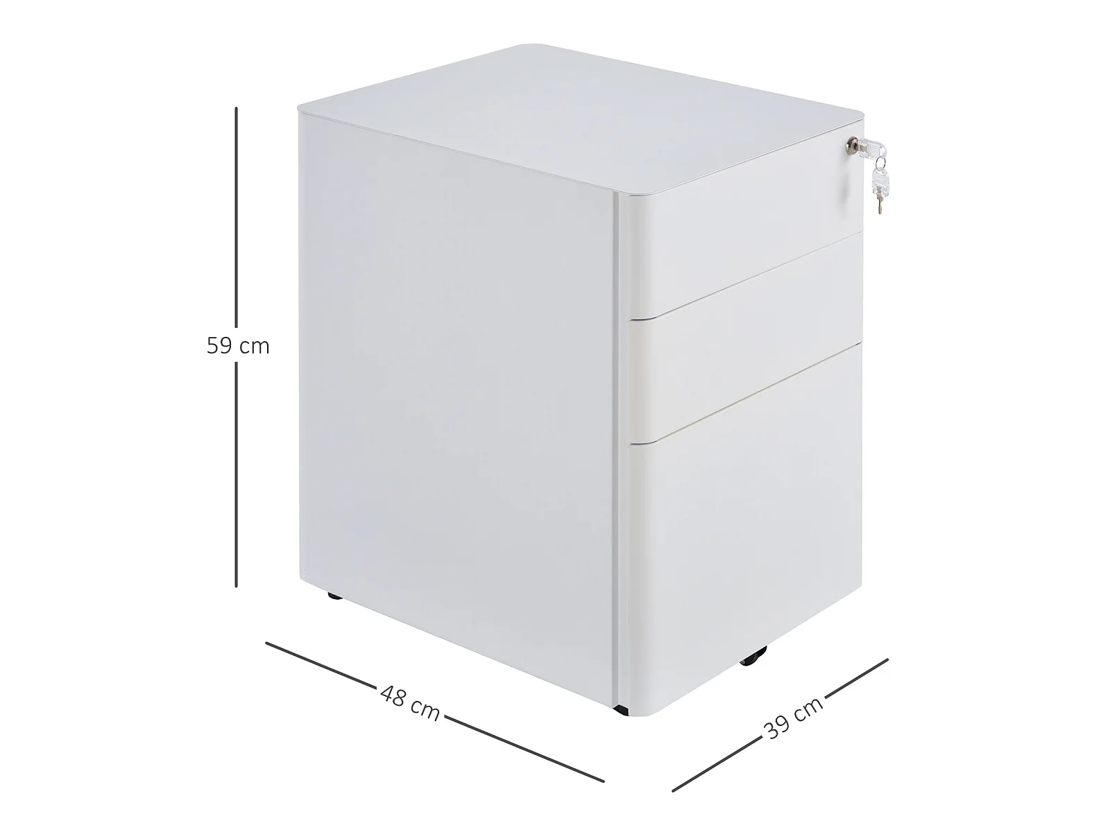 Caisson de bureau rangement bureau sur roulettes 3 tiroirs coulissants verrouillables trieur à dossiers dim. 39L x 48I x 59H cm acier blanc
