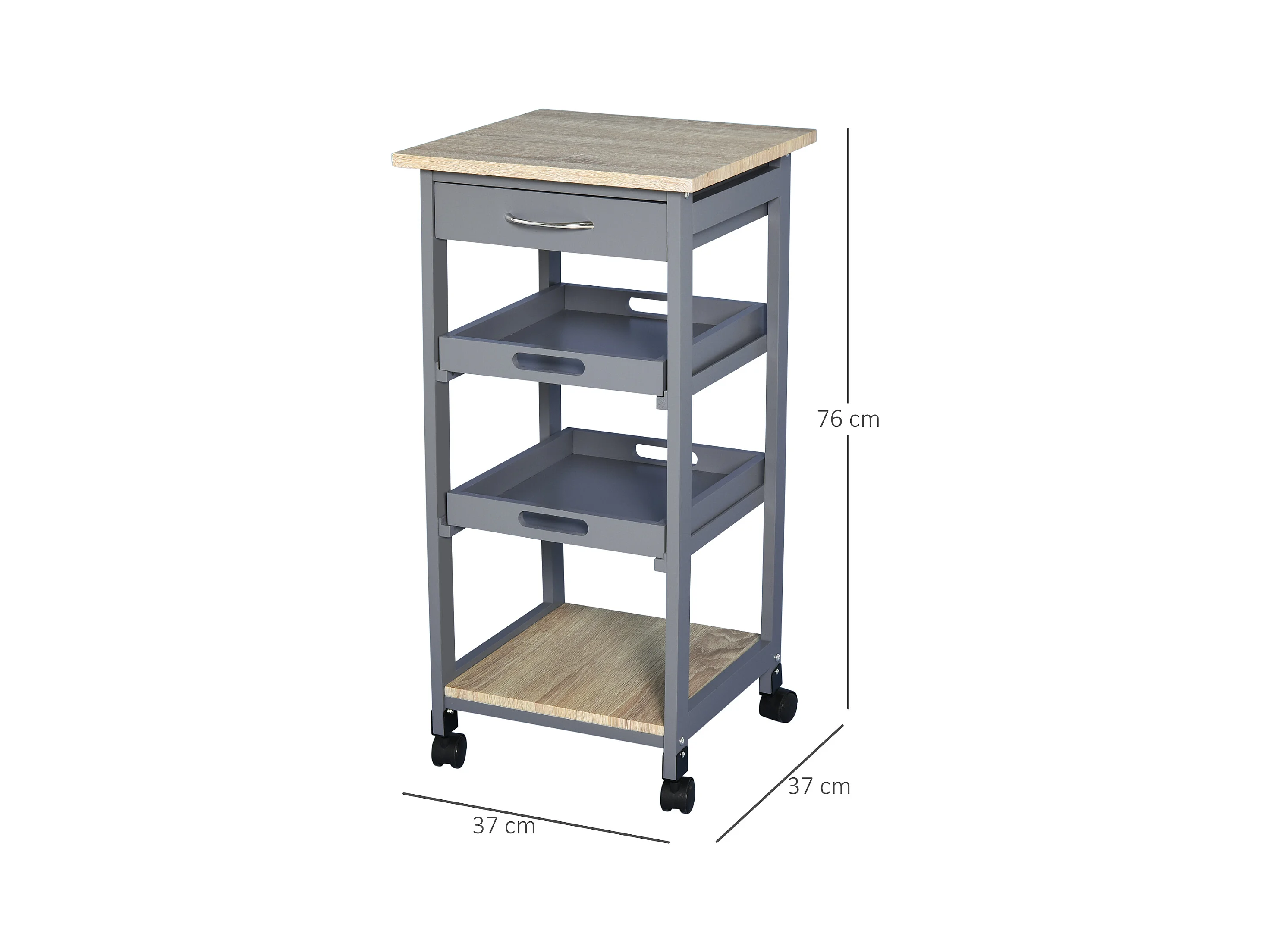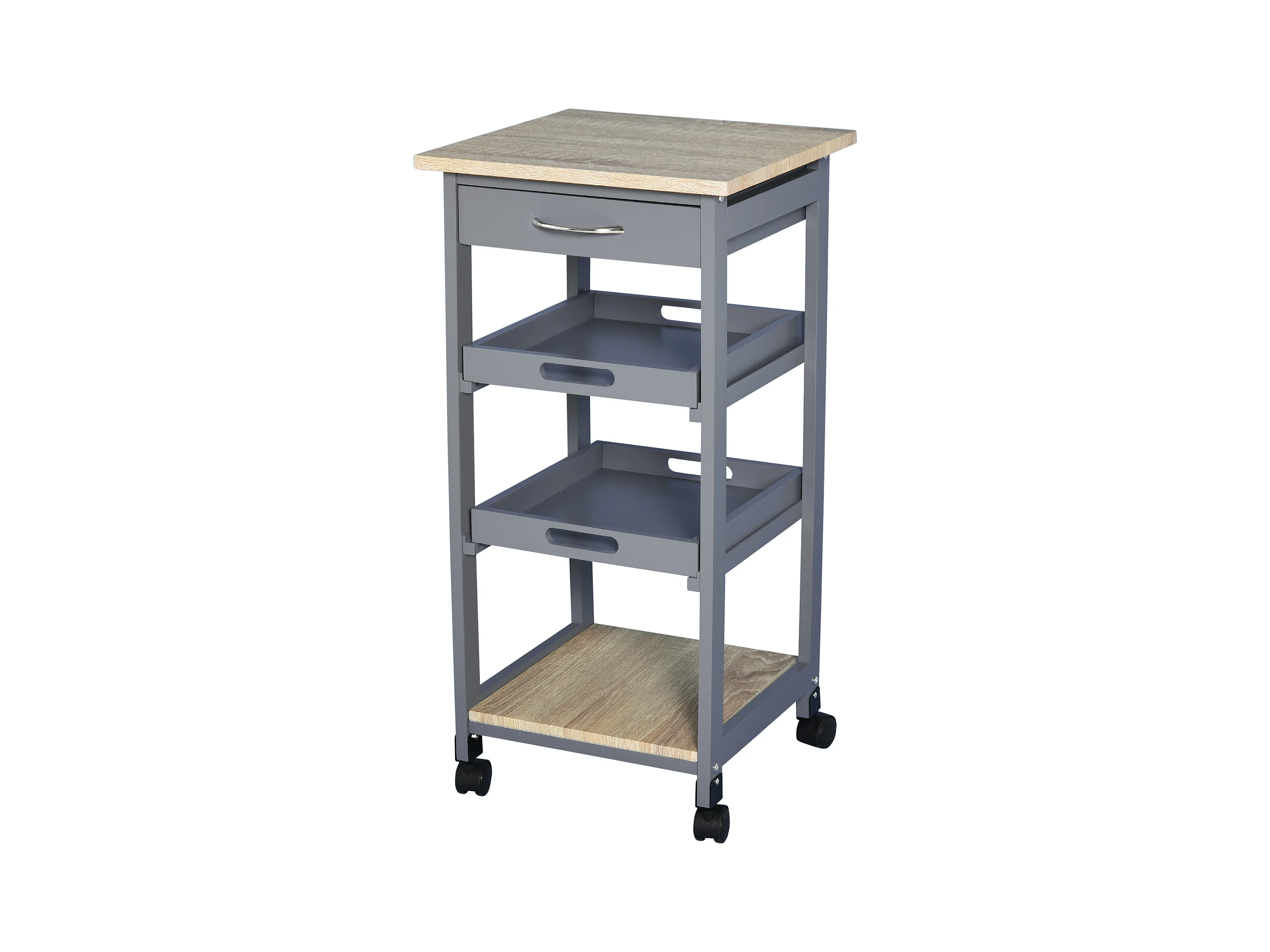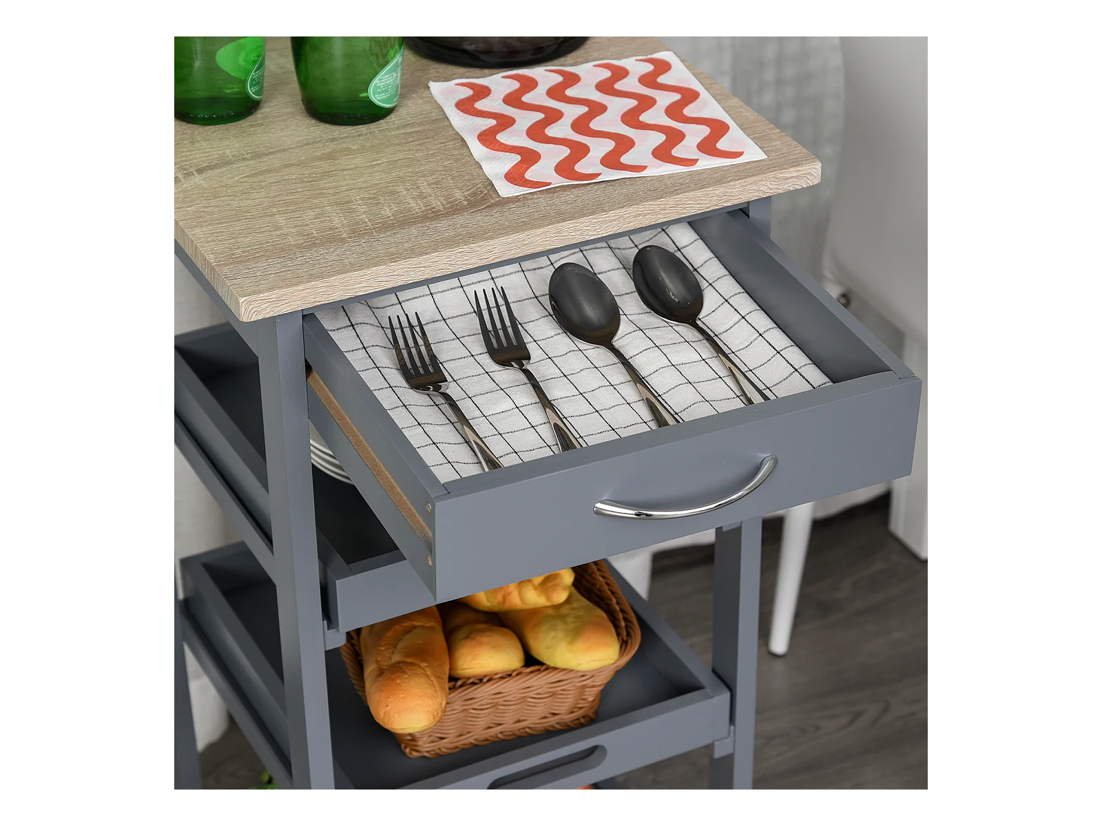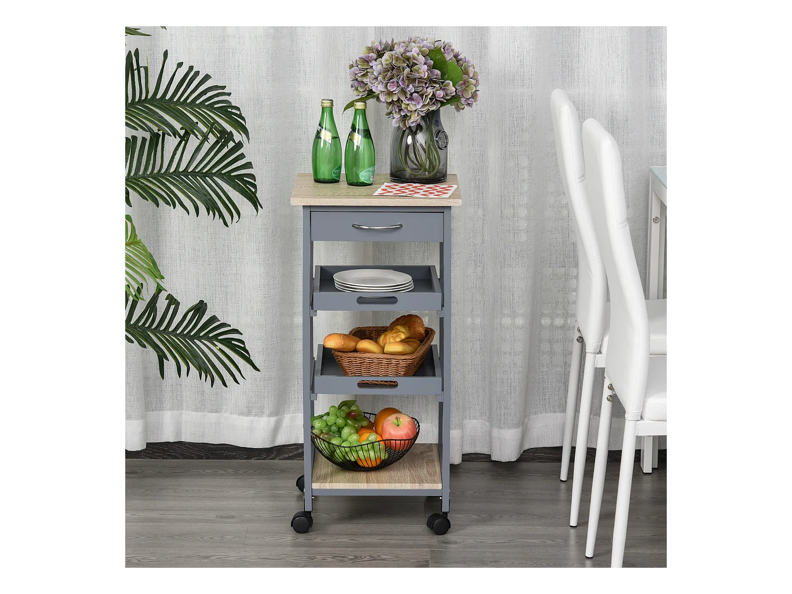 Chariot de service desserte de cuisine à roulettes 2 plateaux amovibles, tiroir, étagère MDF chêne clair bois pin gris