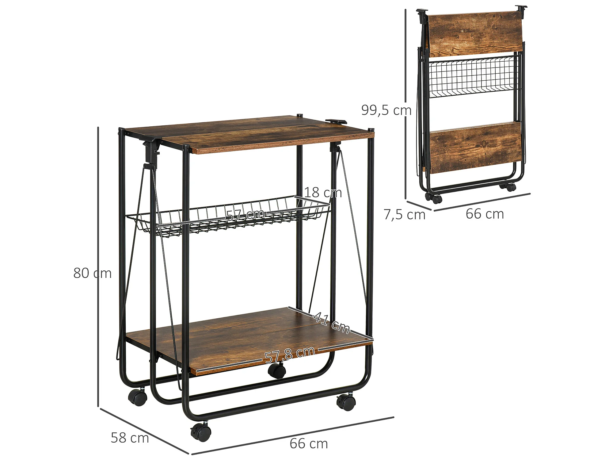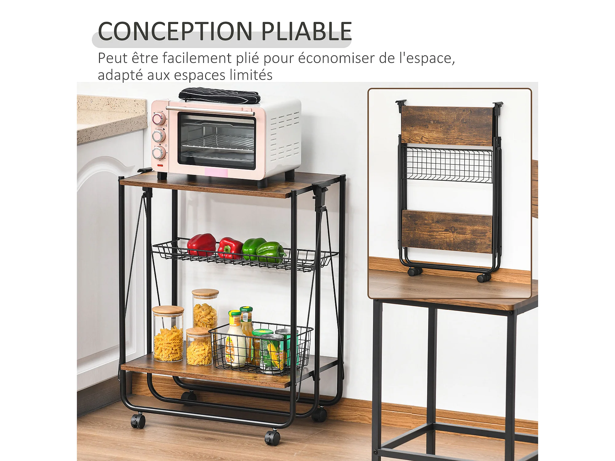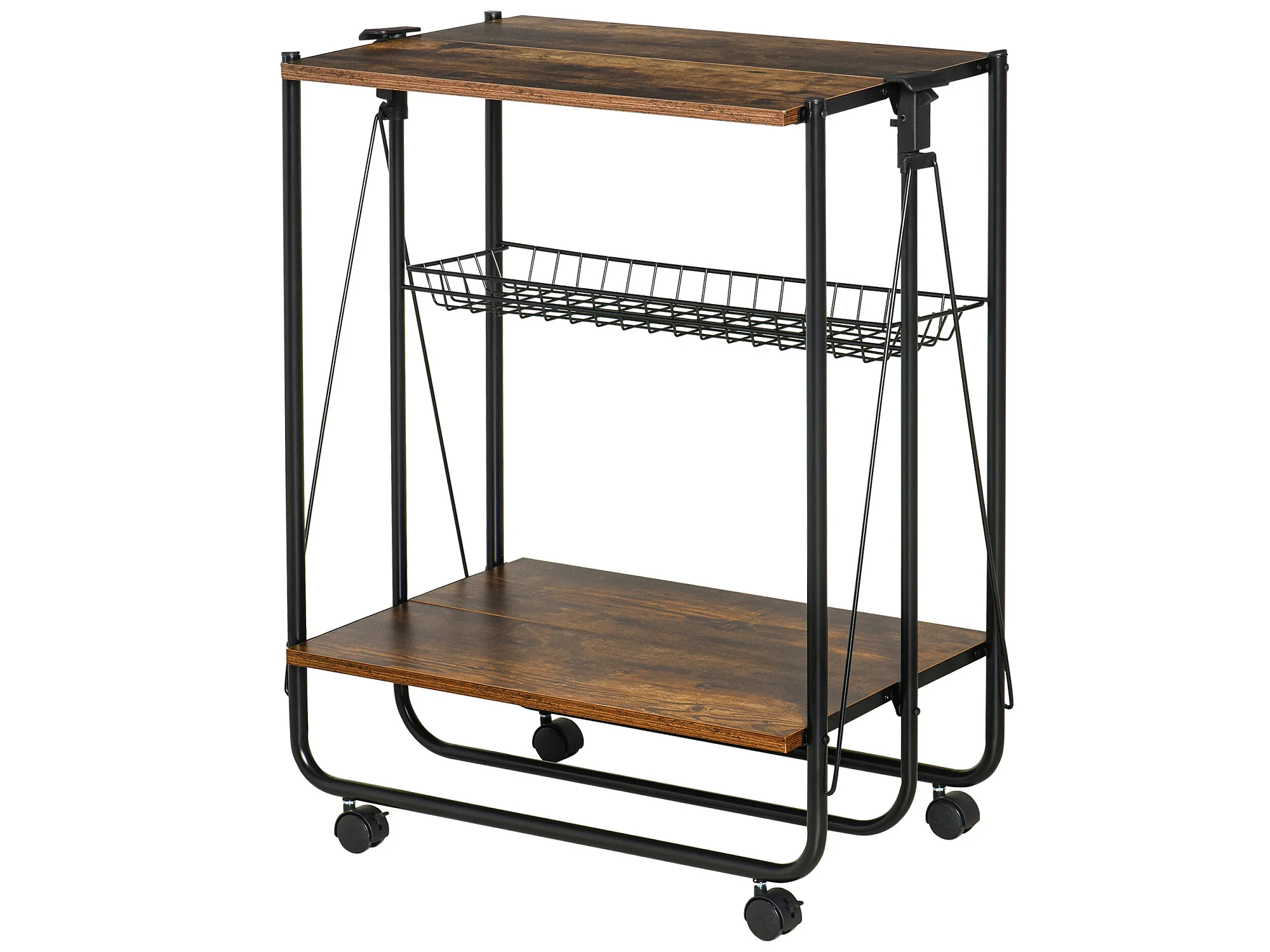 HOMCOM Desserte Vintage style industriel 3 étagères - desserte pliable - métal noir aspect vieux bois