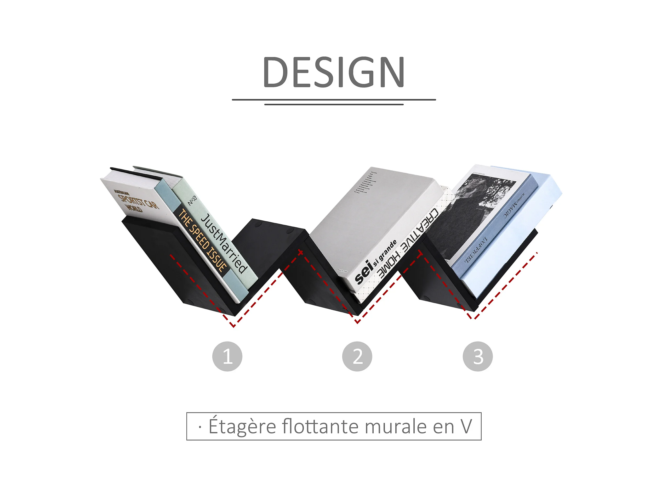 HOMCOM Etagères murale flottante - design contemporain en V - kit fixation inclus - panneaux particules noir